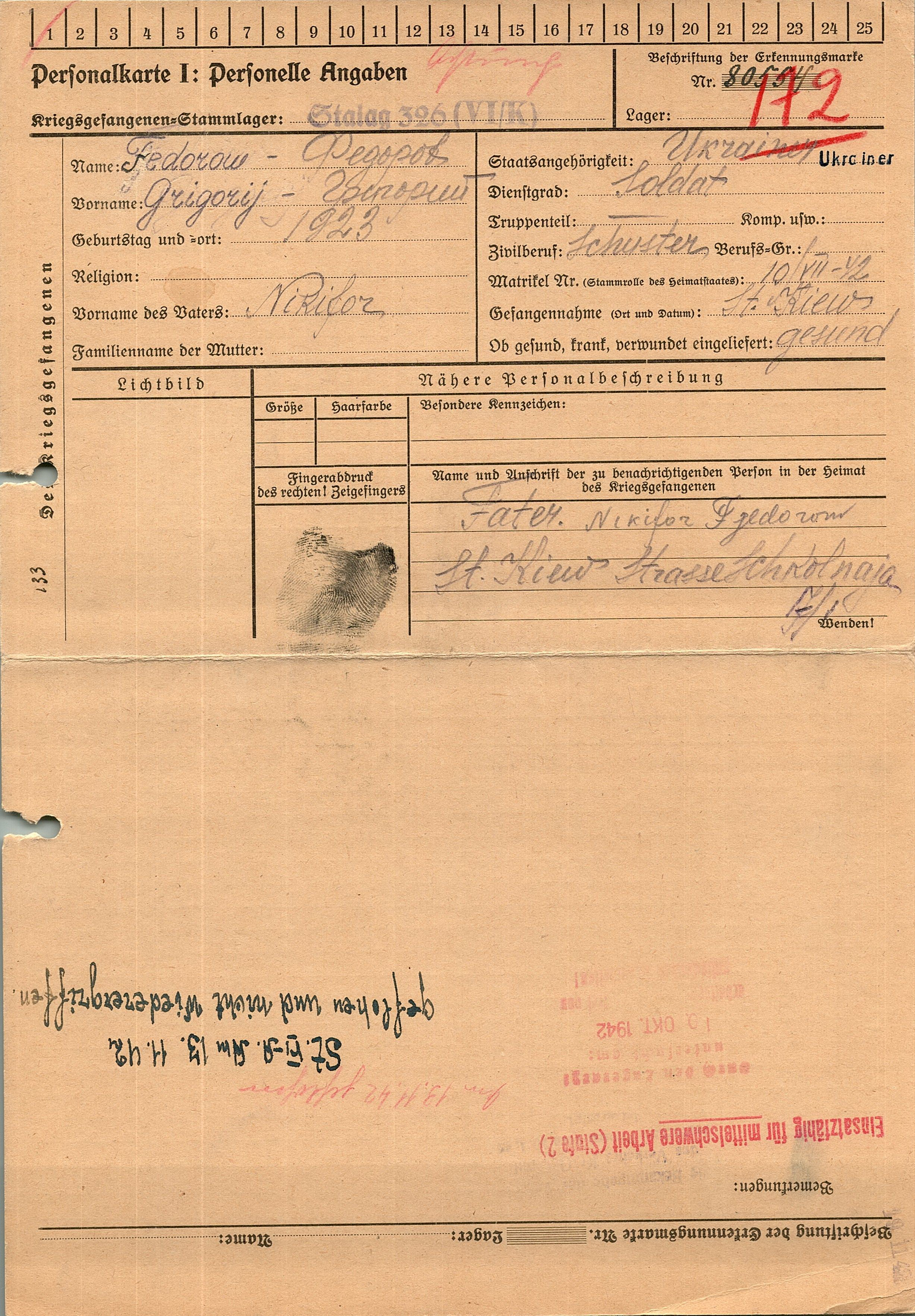 Военнопленные, трофейные карточки. Киевская обл.