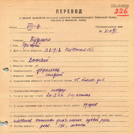 Военнопленные, трофейные карточки. Киевская обл.