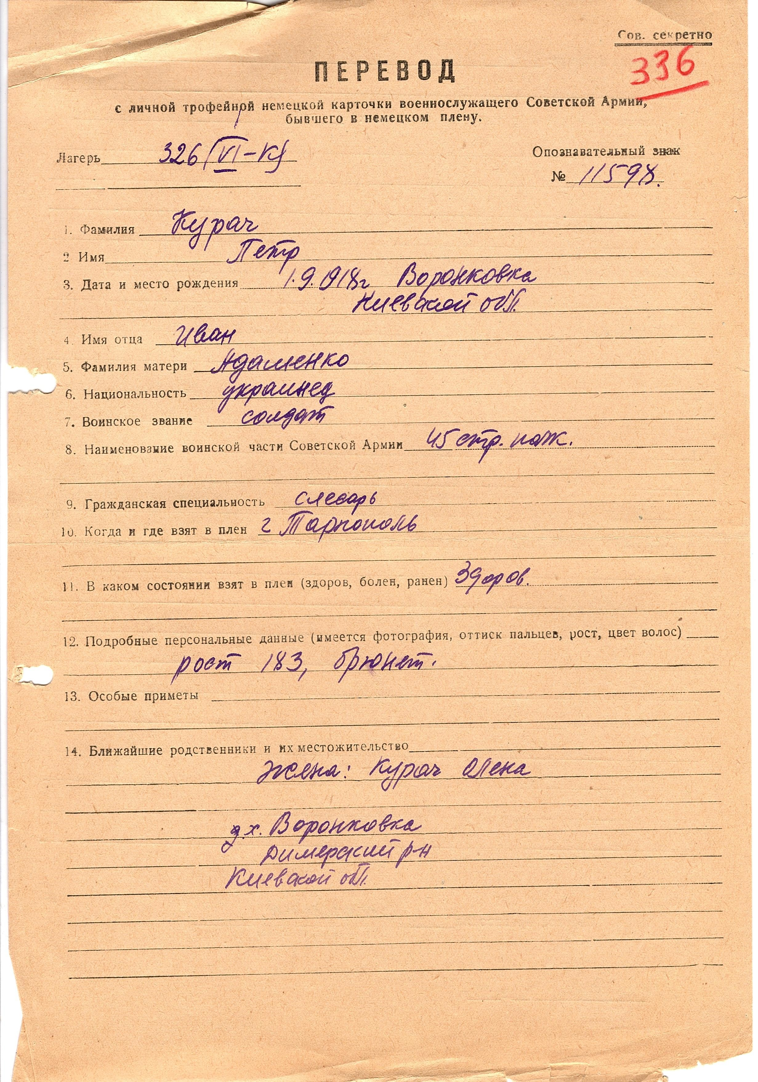 Военнопленные, трофейные карточки. Киевская обл.
