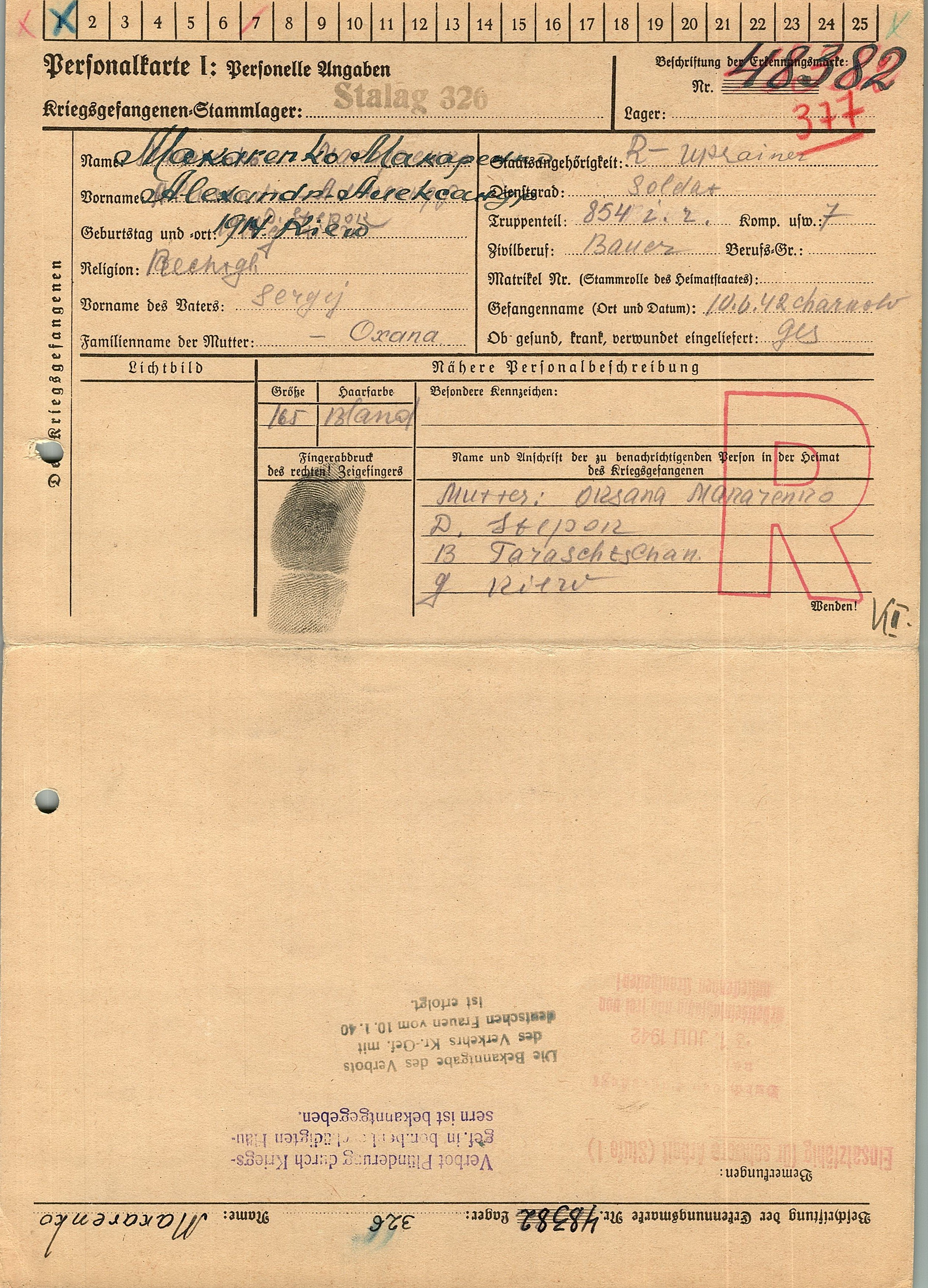 Военнопленные, трофейные карточки. Киевская обл.