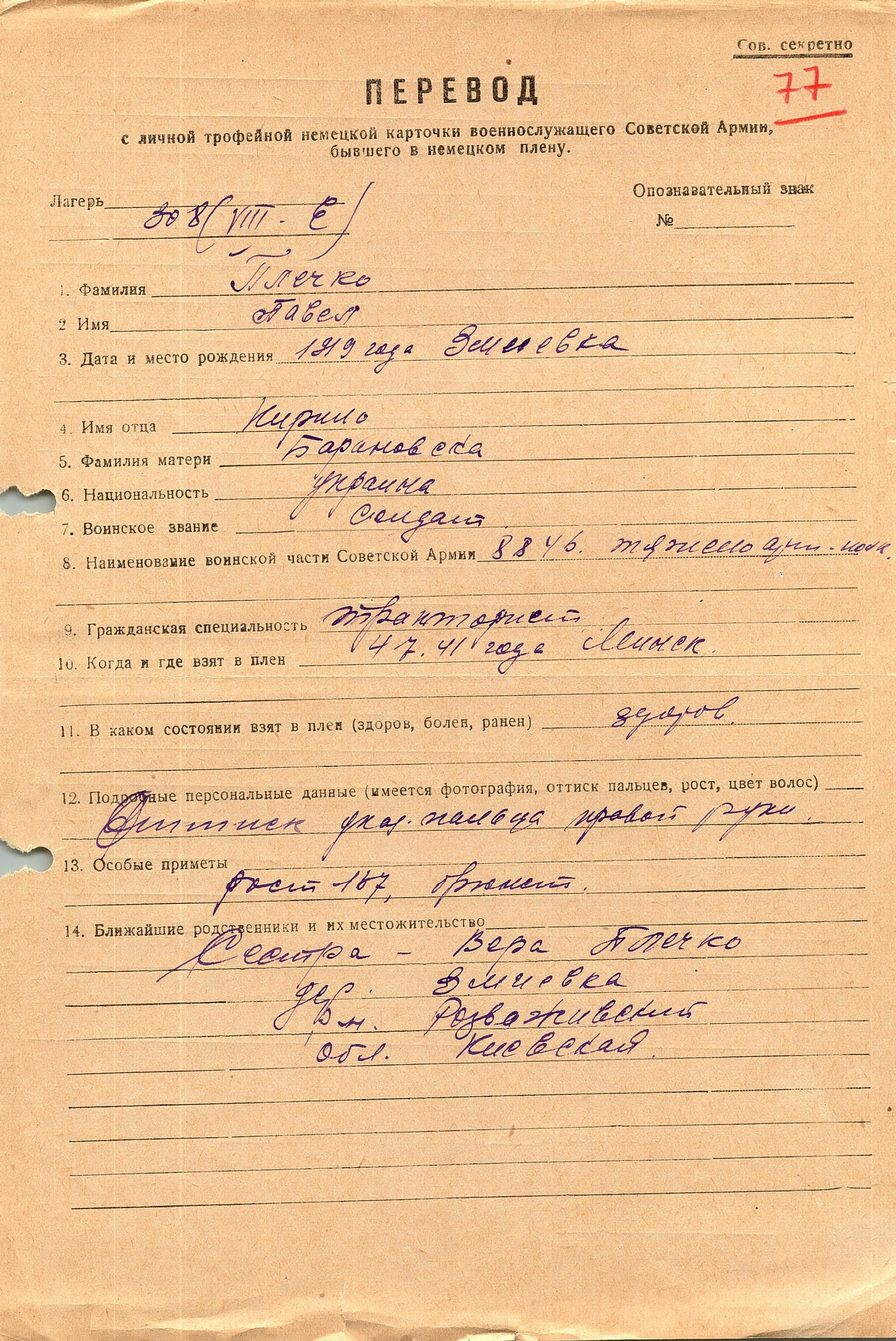 Военнопленные, трофейные карточки. Киевская обл.