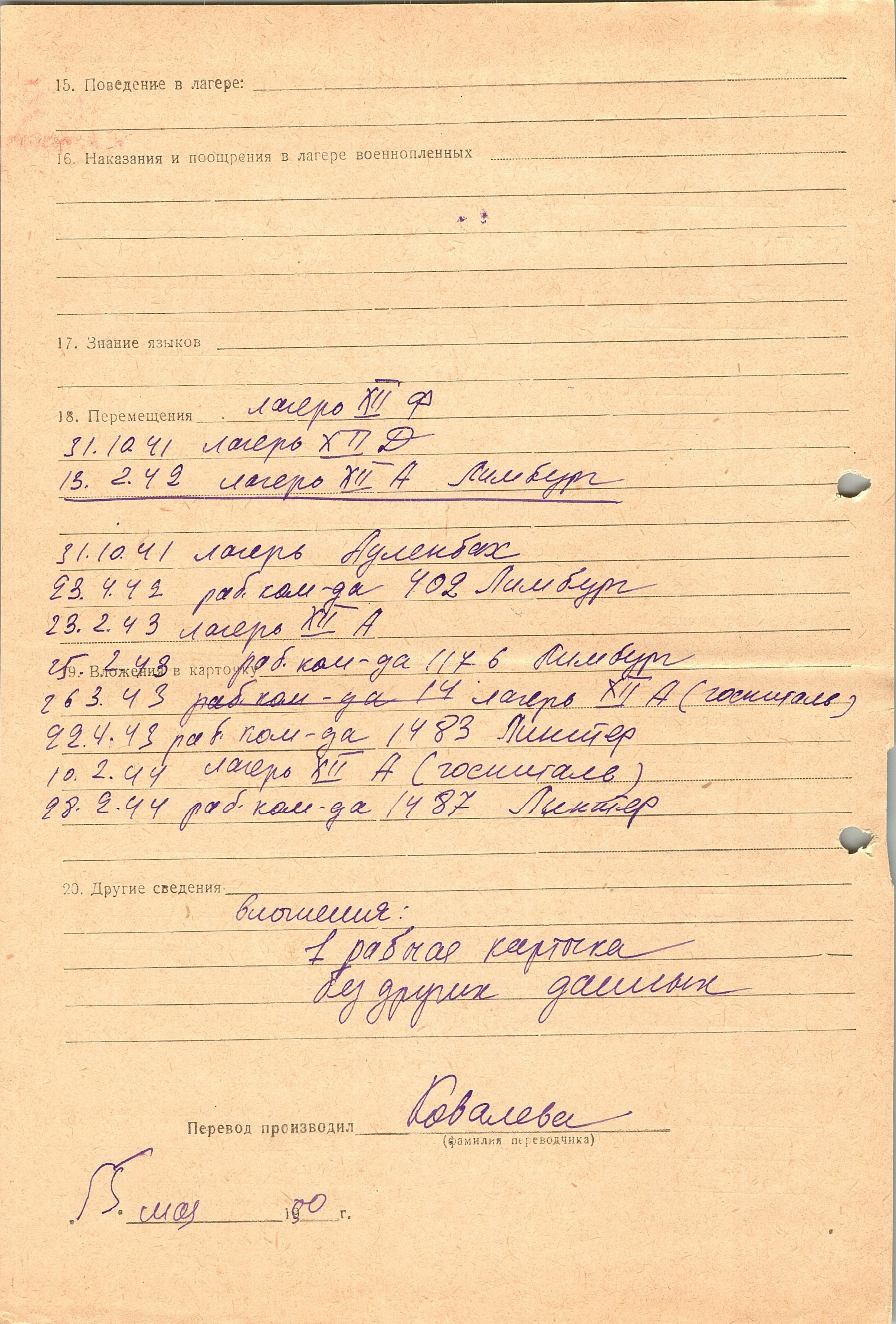 Военнопленные, трофейные карточки. Киевская обл.