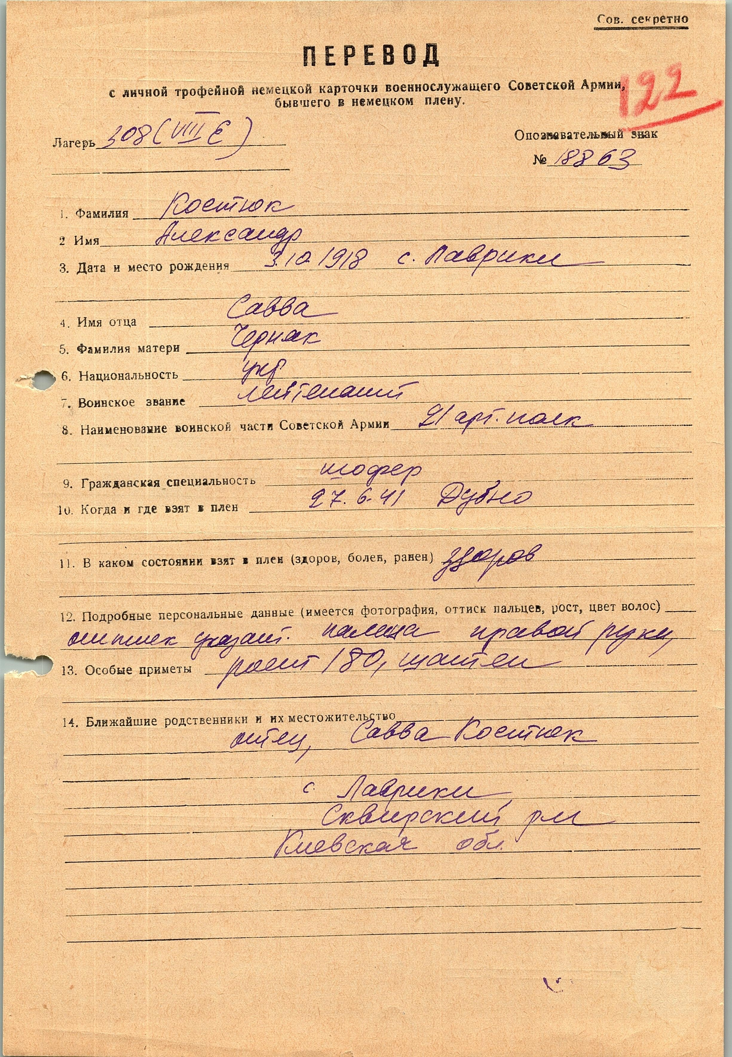 Военнопленные, трофейные карточки. Киевская обл.