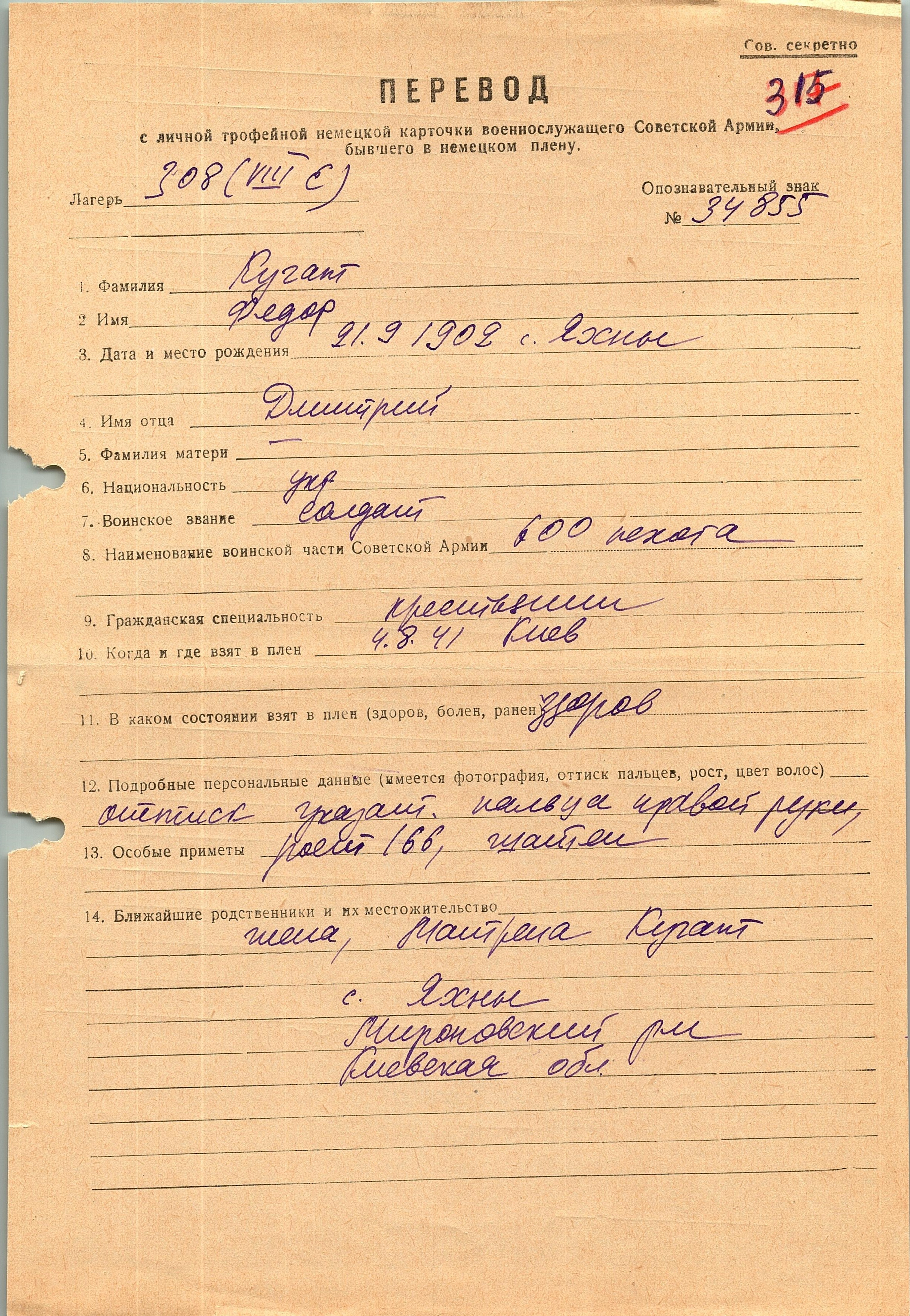 Военнопленные, трофейные карточки. Киевская обл.