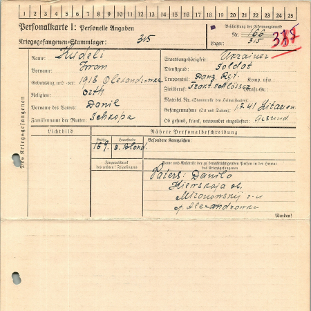 Военнопленные, трофейные карточки. Киевская обл.