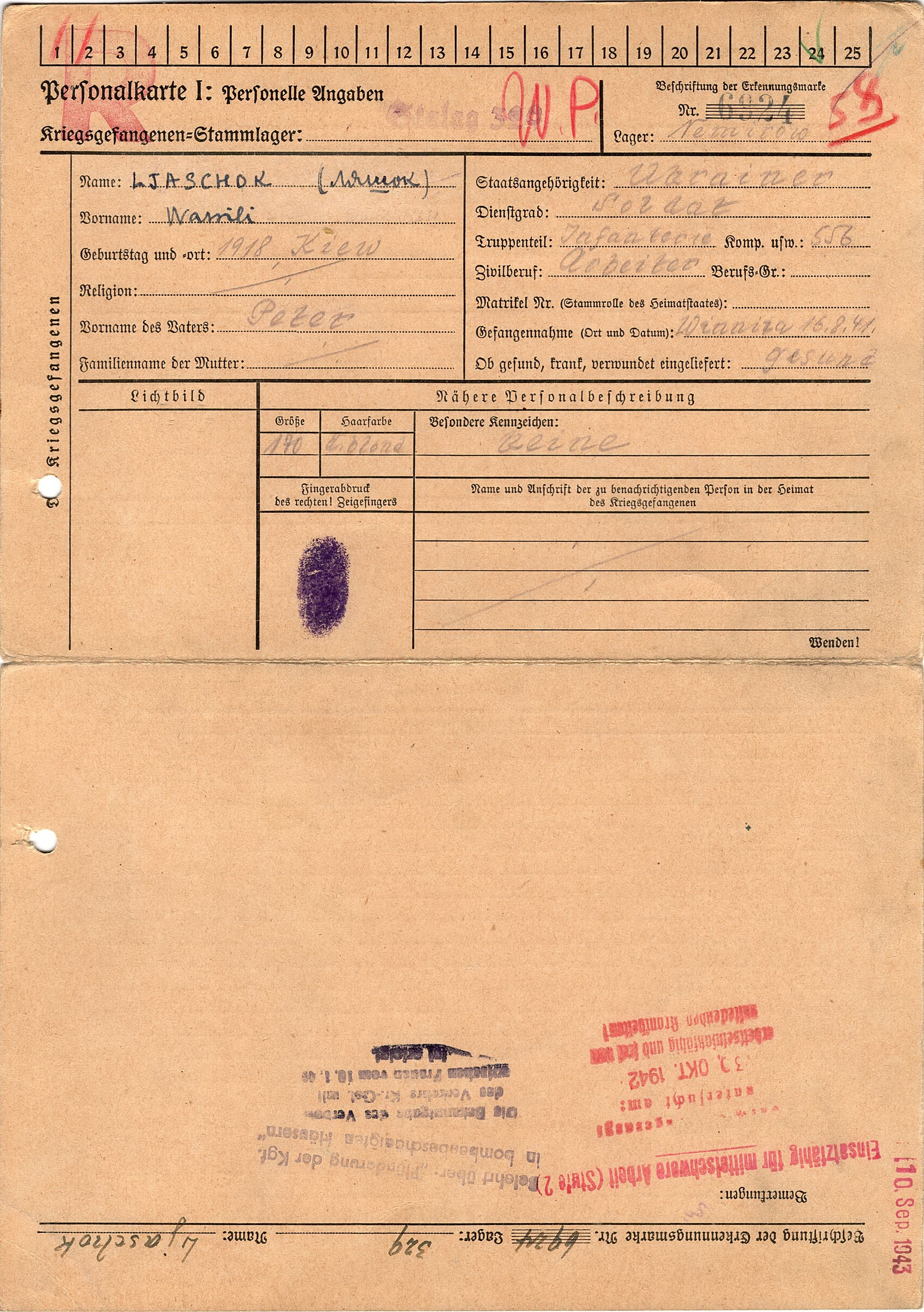 Военнопленные, трофейные карточки. Киевская обл.