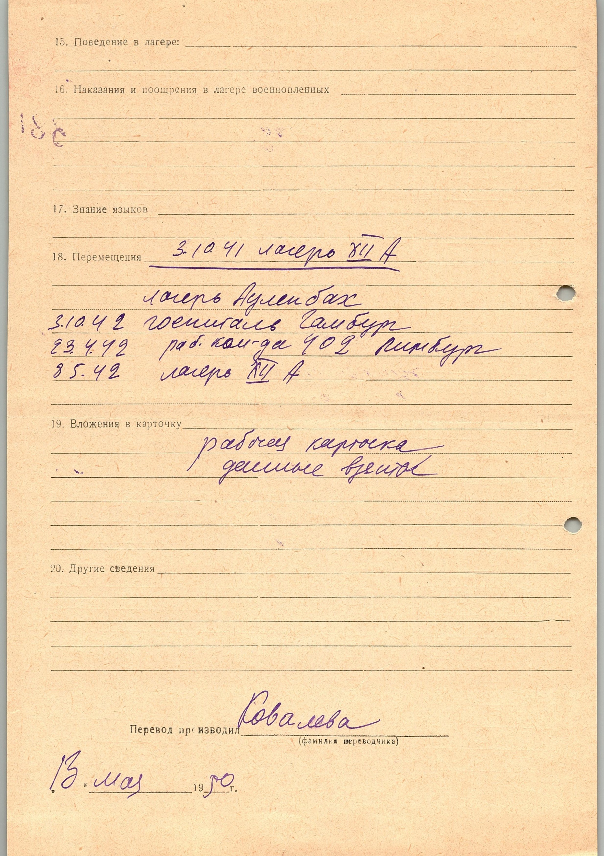 Военнопленные, трофейные карточки. Киевская обл.