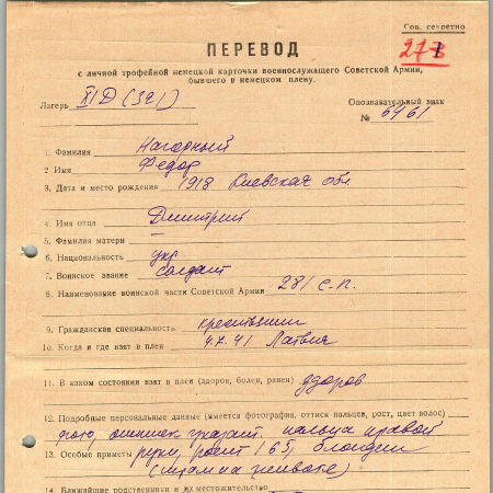 Военнопленные, трофейные карточки. Киевская обл.