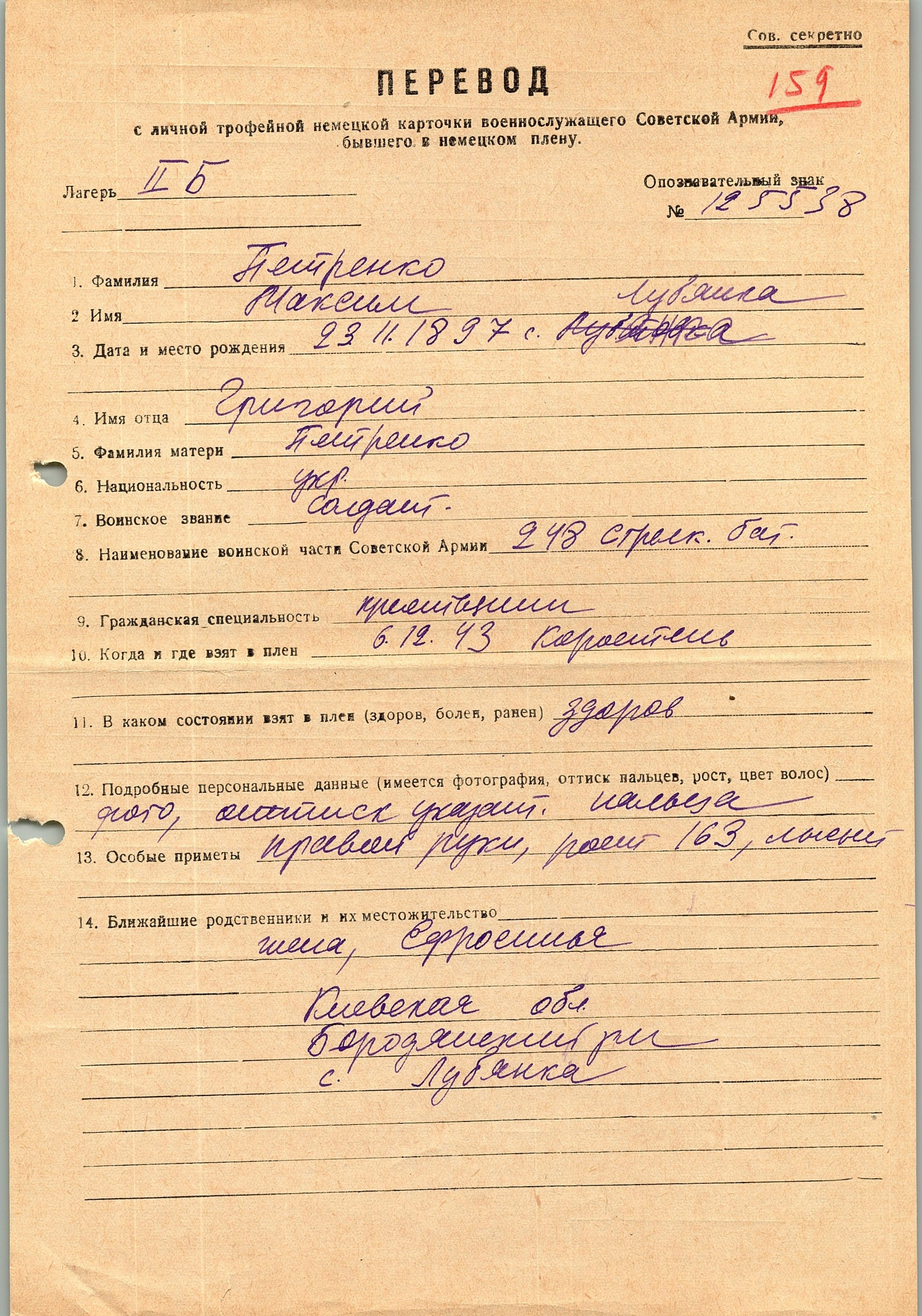 Военнопленные, трофейные карточки. Киевская обл.
