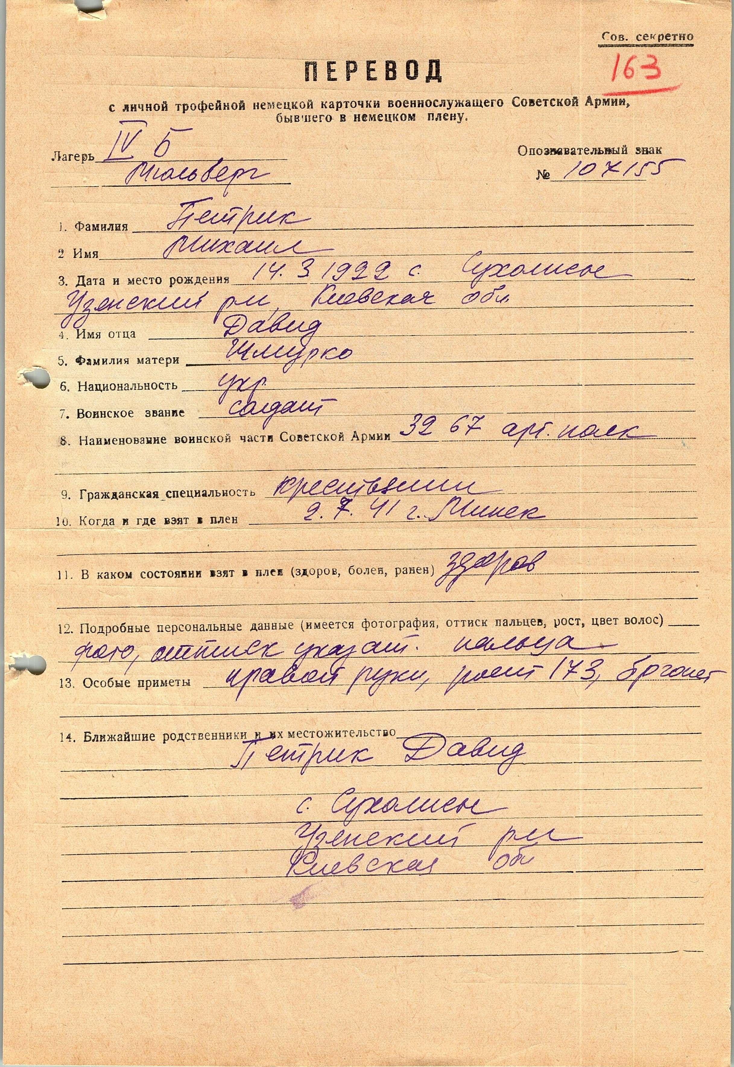 Военнопленные, трофейные карточки. Киевская обл.