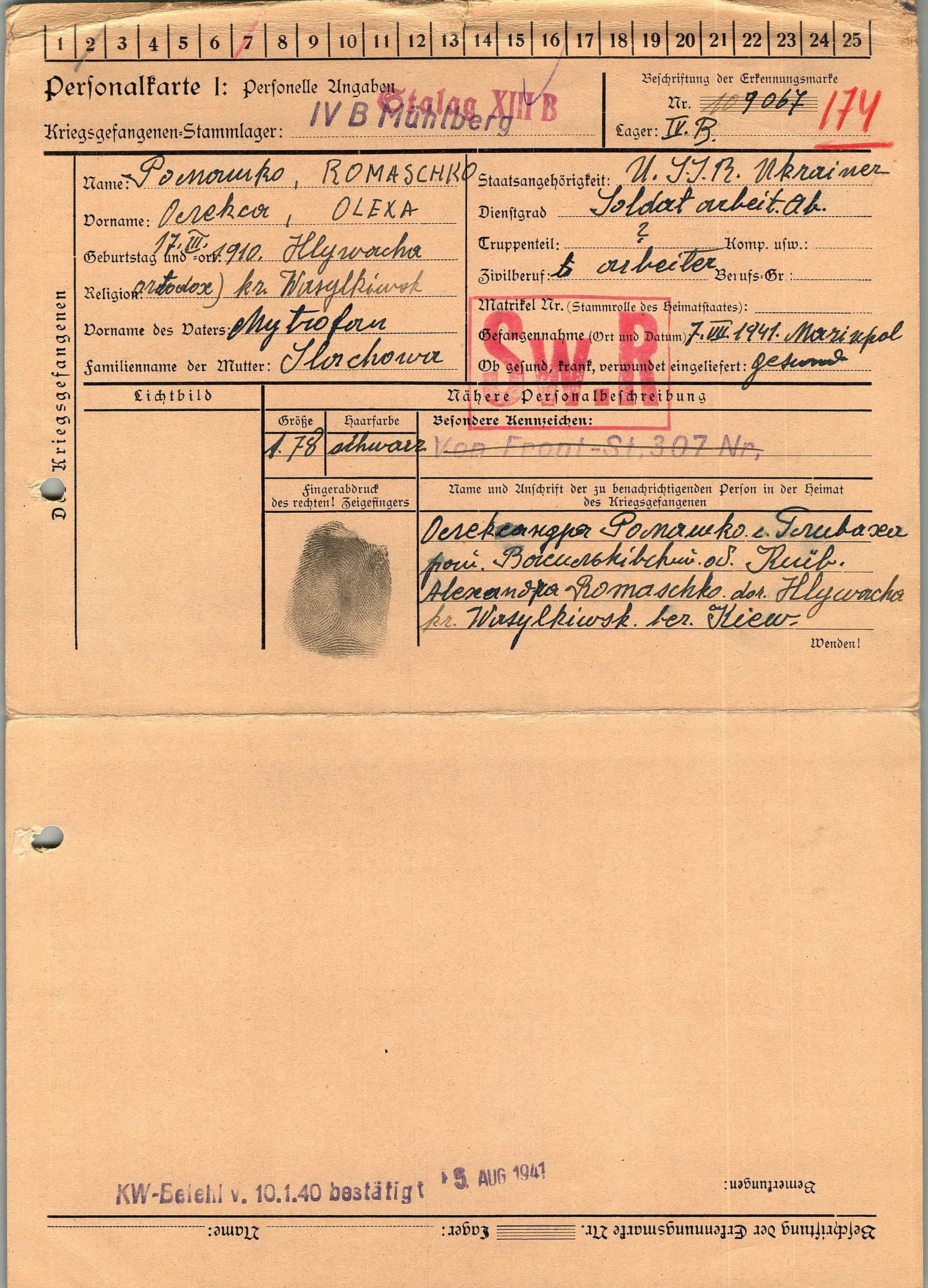 Военнопленные, трофейные карточки. Киевская обл.