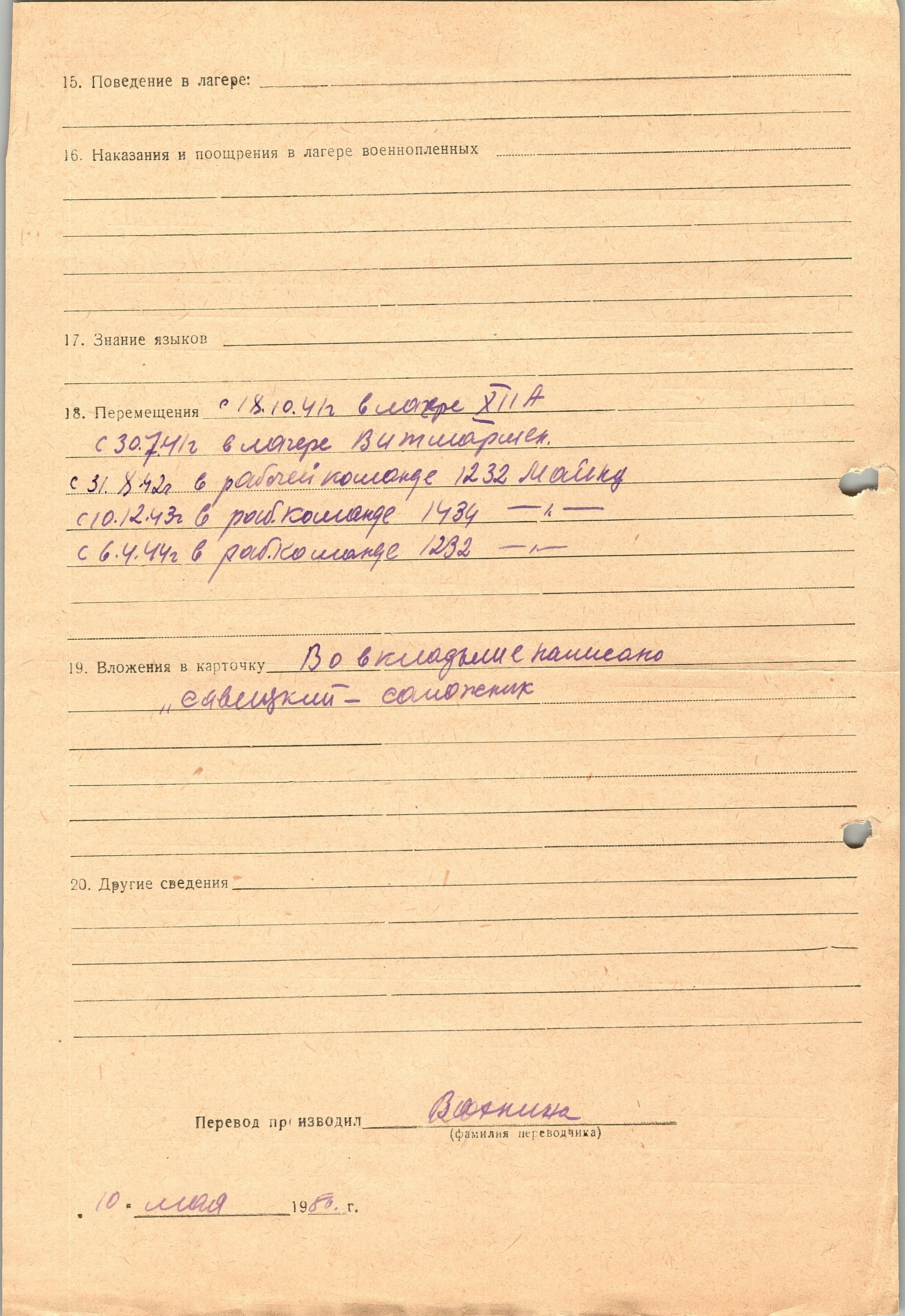 Военнопленные, трофейные карточки. Киевская обл.