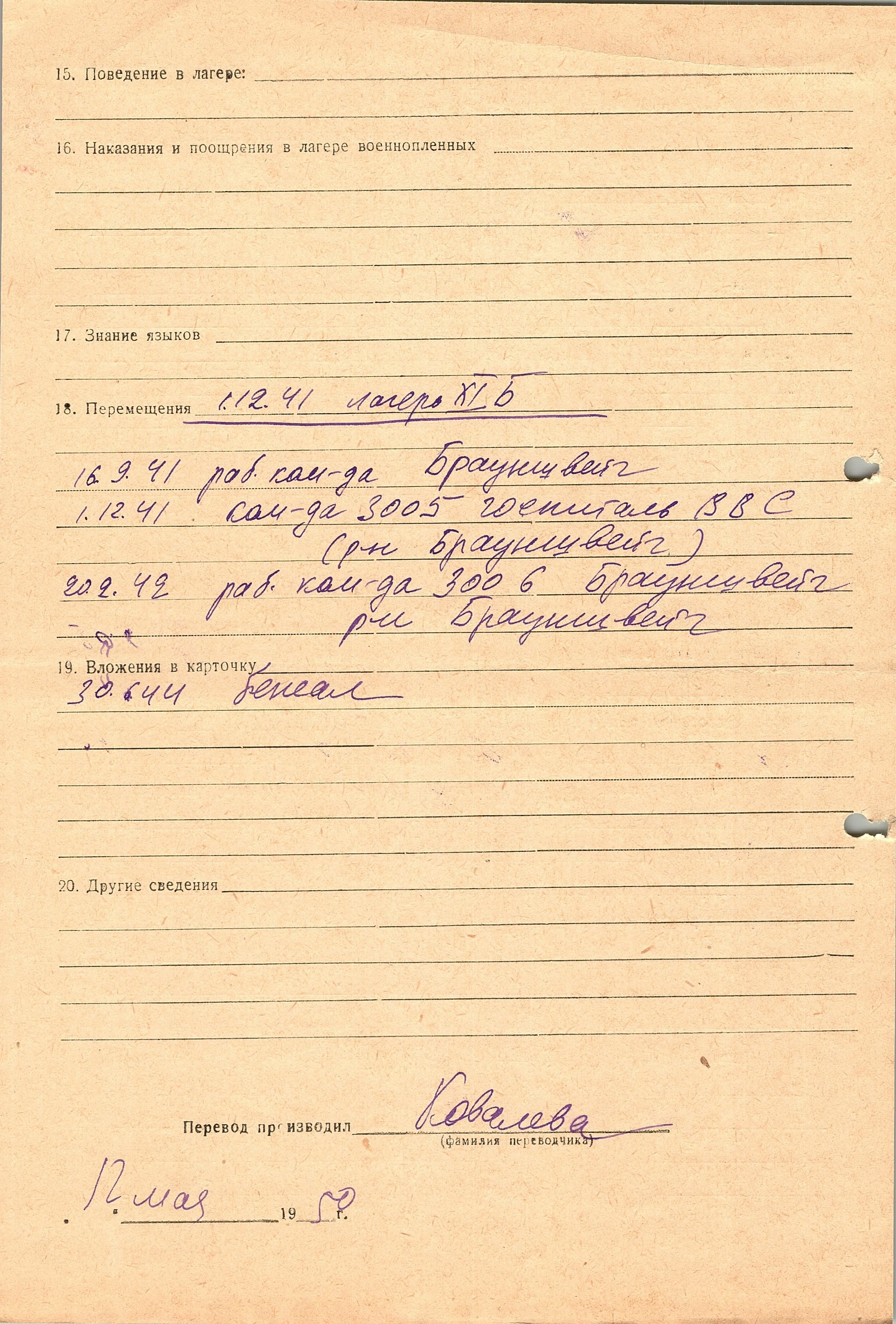 Военнопленные, трофейные карточки. Киевская обл.