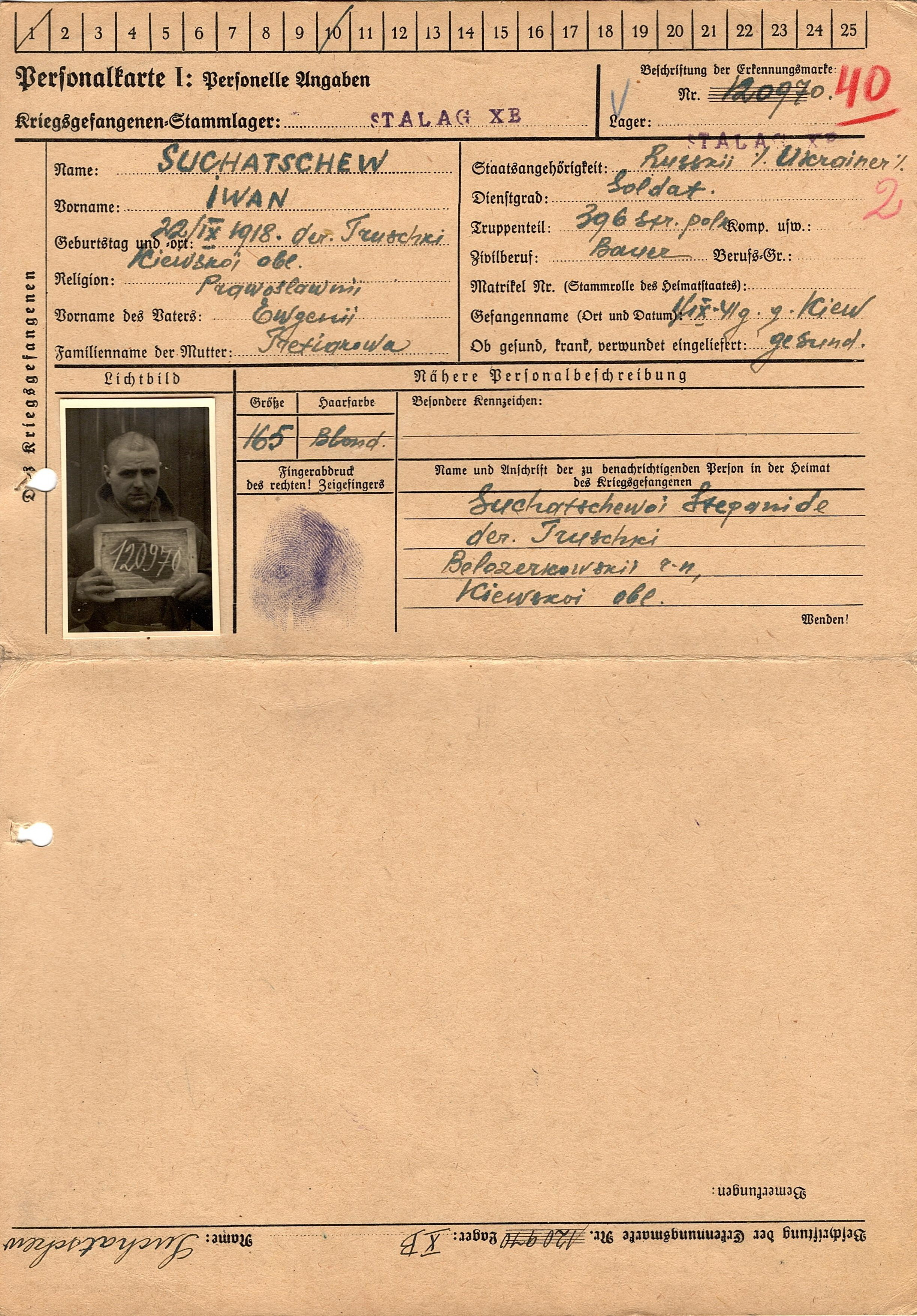 Военнопленные, трофейные карточки. Киевская обл.