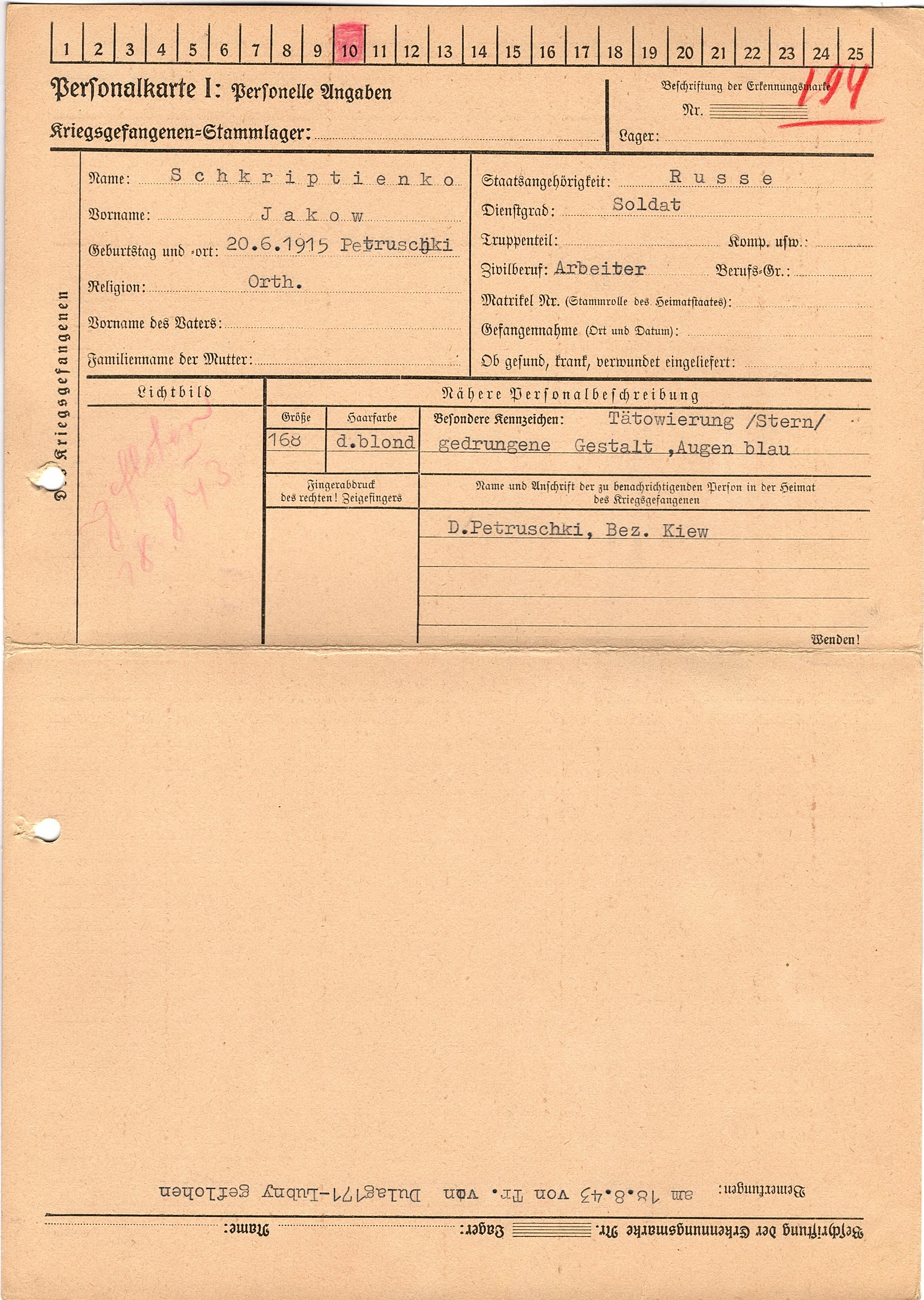 Военнопленные, трофейные карточки. Киевская обл.