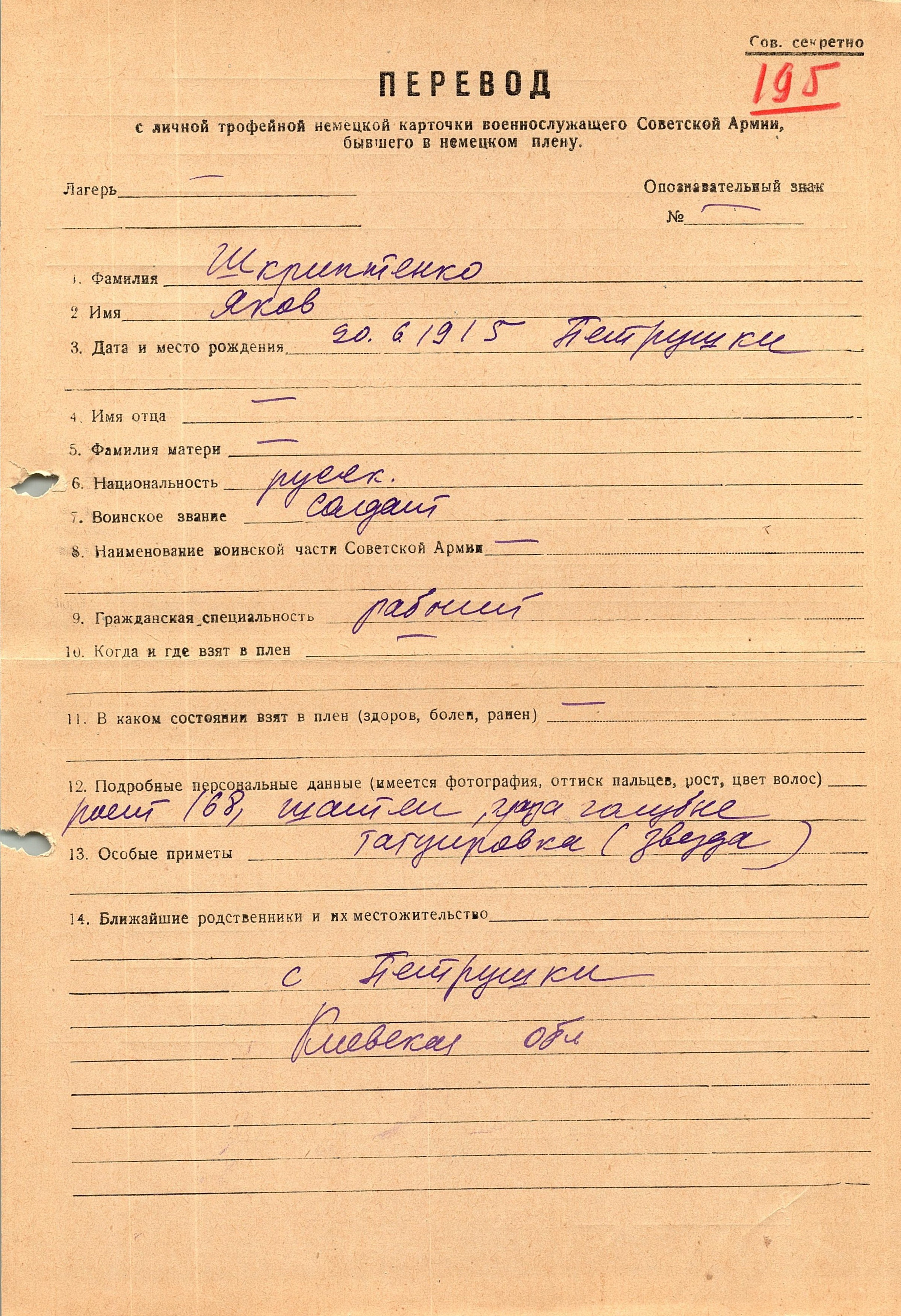 Военнопленные, трофейные карточки. Киевская обл.