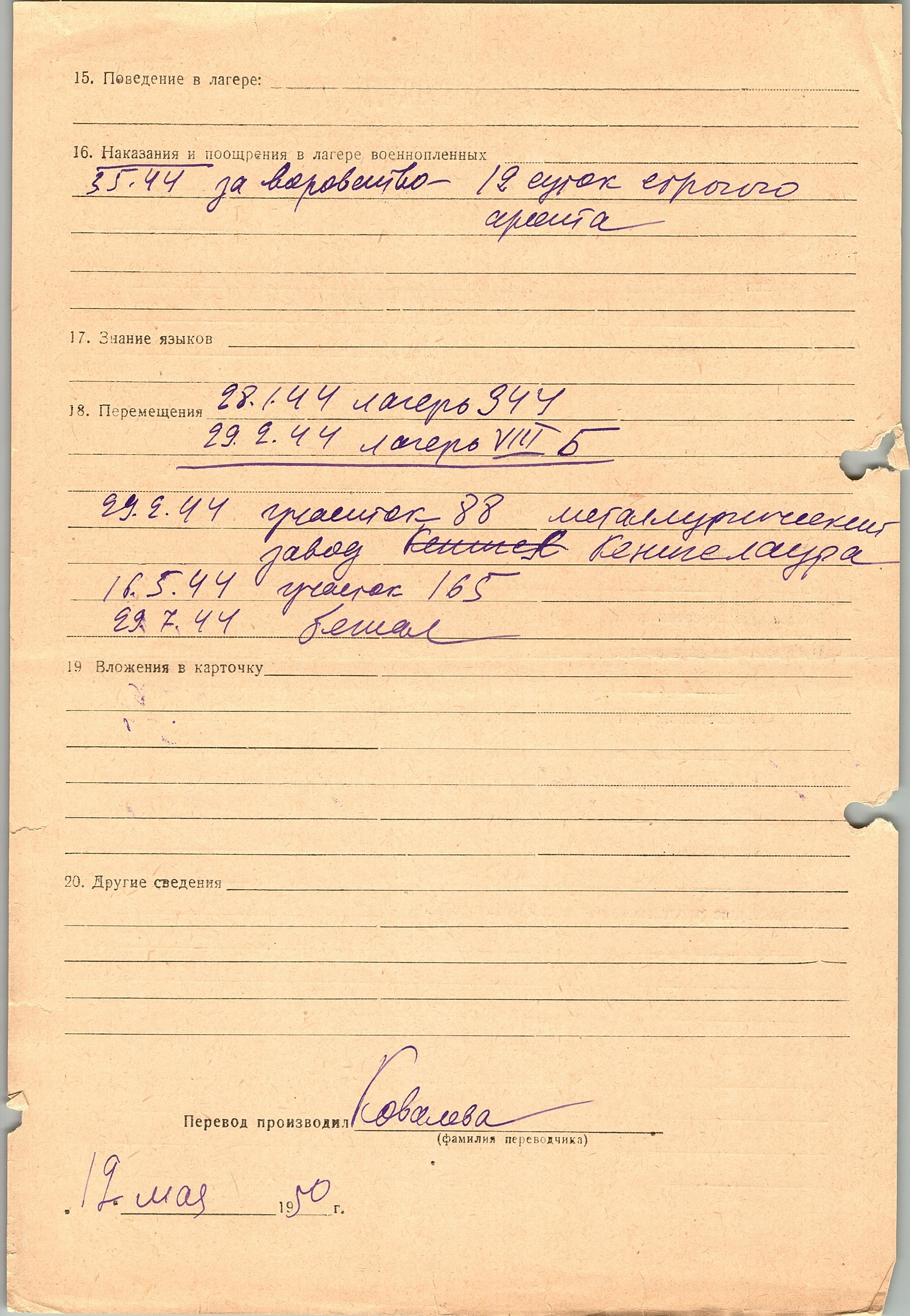 Военнопленные, трофейные карточки. Киевская обл.