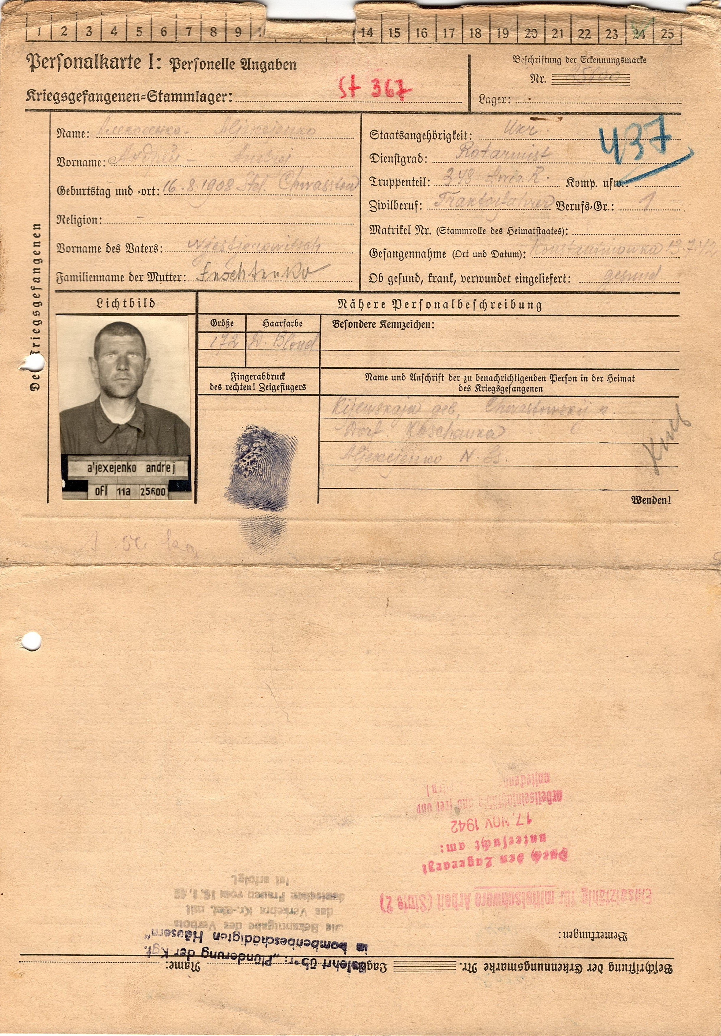 Военнопленные, трофейные карточки. Киевская обл.