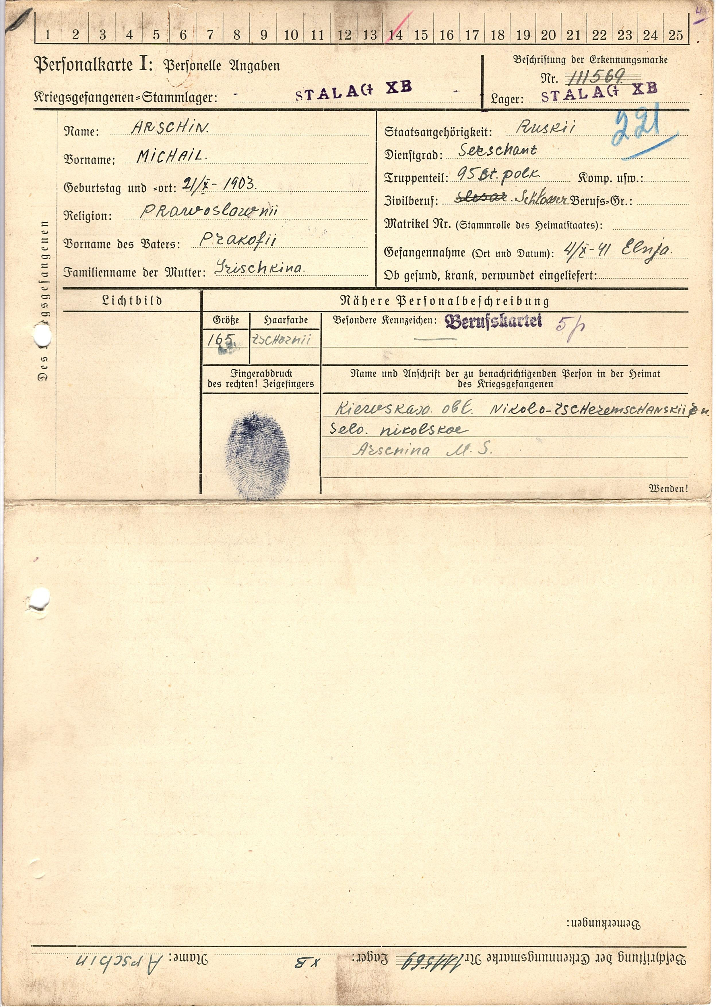 Военнопленные, трофейные карточки. Киевская обл.