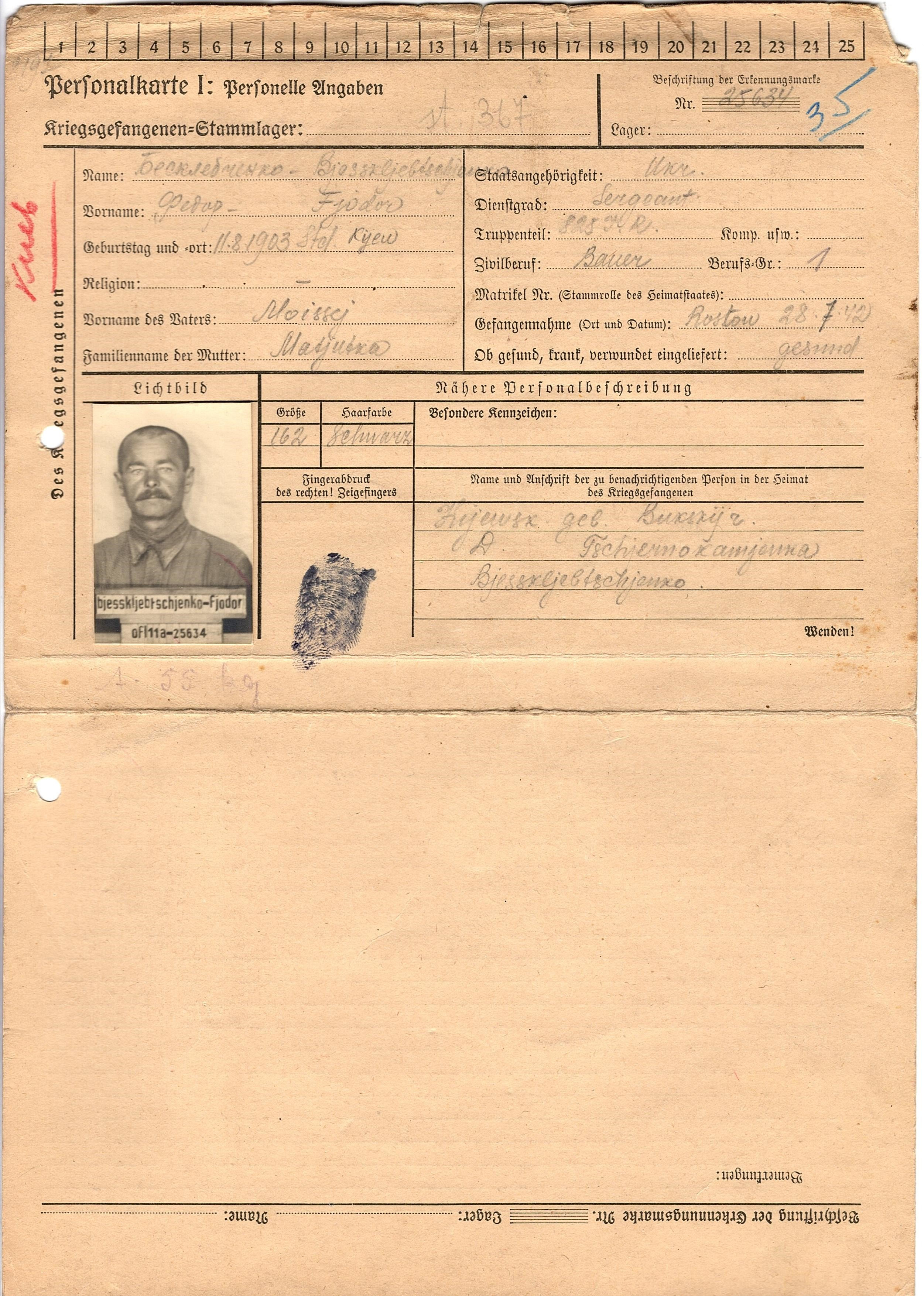 Военнопленные, трофейные карточки. Киевская обл.