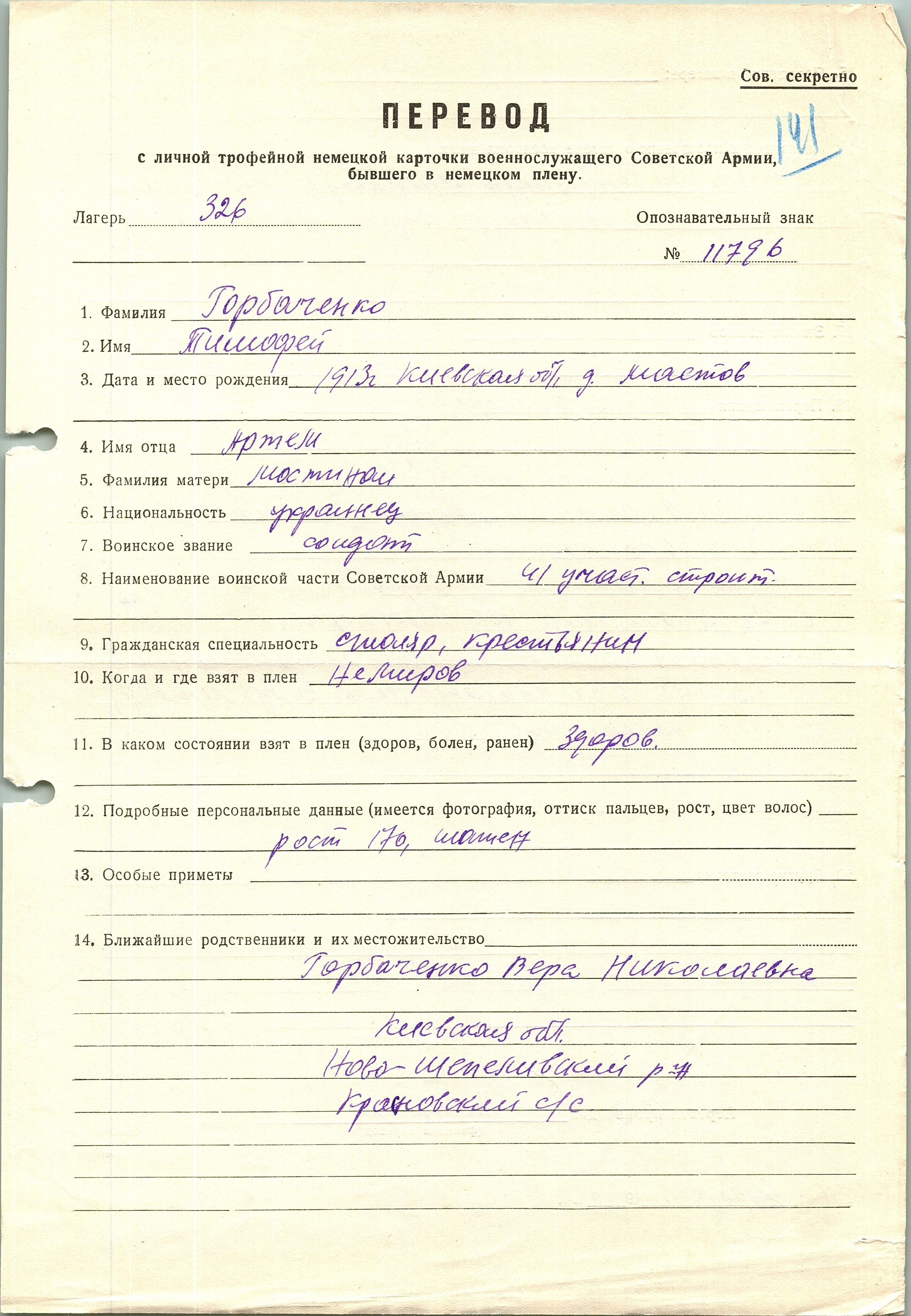 Военнопленные, трофейные карточки. Киевская обл.