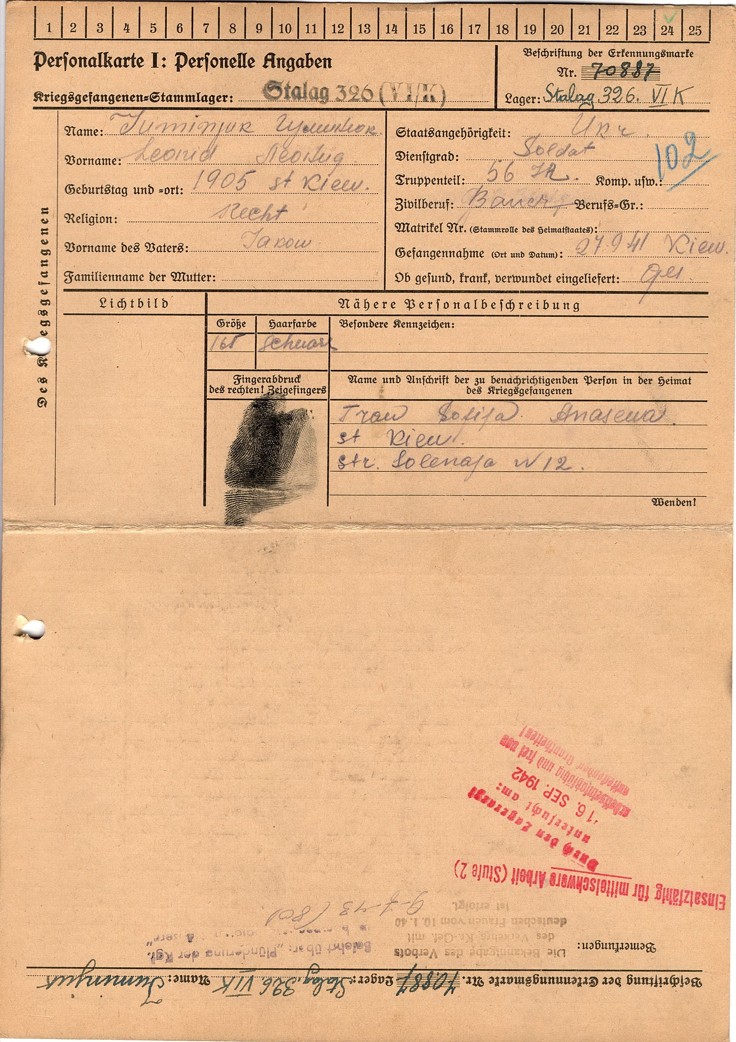 Военнопленные, трофейные карточки. Киевская обл.