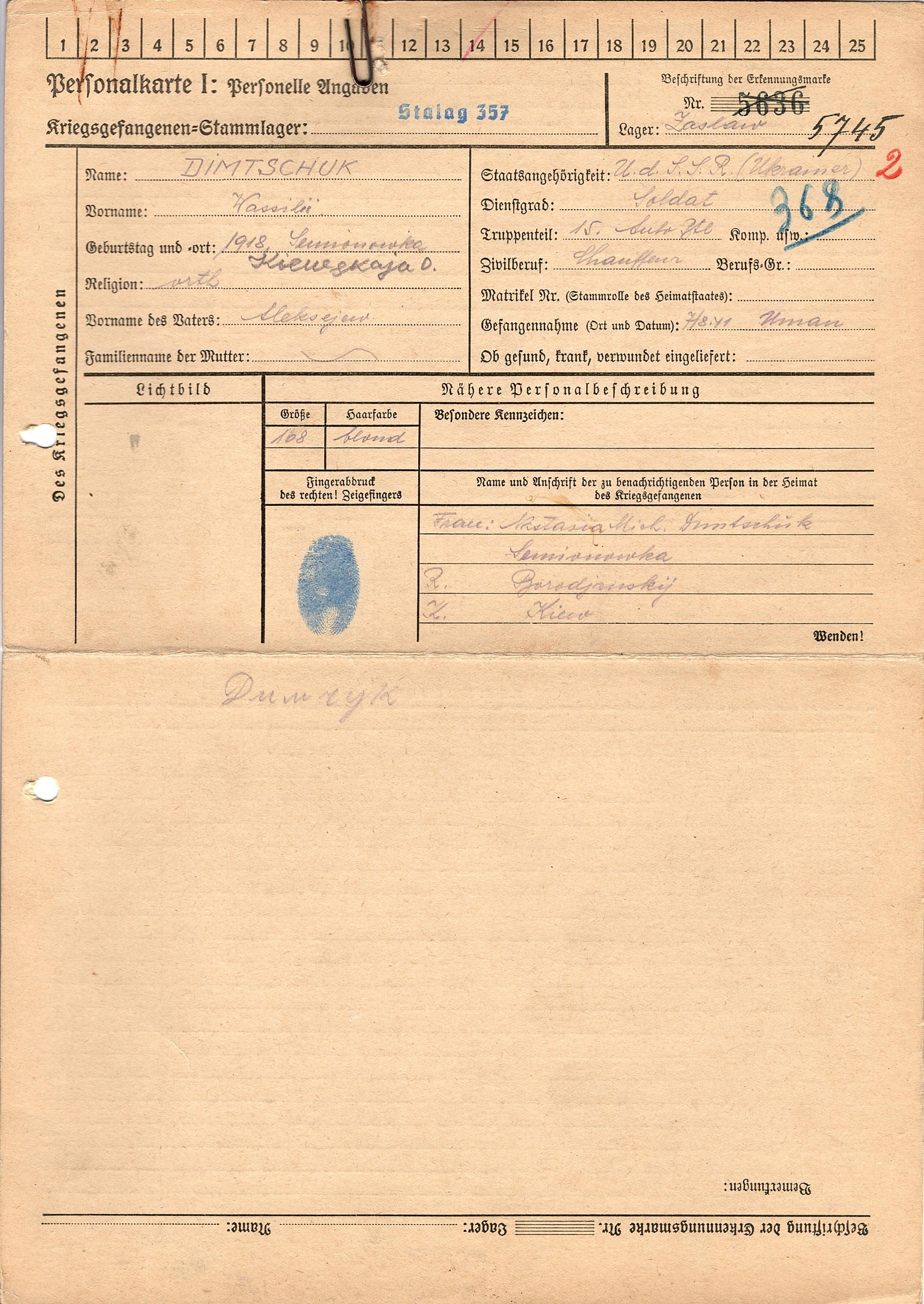 Военнопленные, трофейные карточки. Киевская обл.