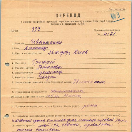 Военнопленные, трофейные карточки. Киевская обл.