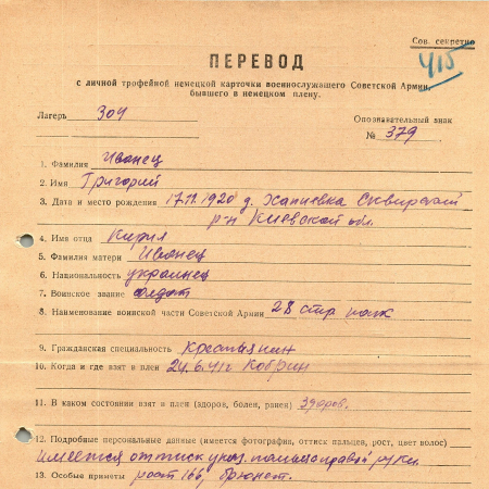 Военнопленные, трофейные карточки. Киевская обл.