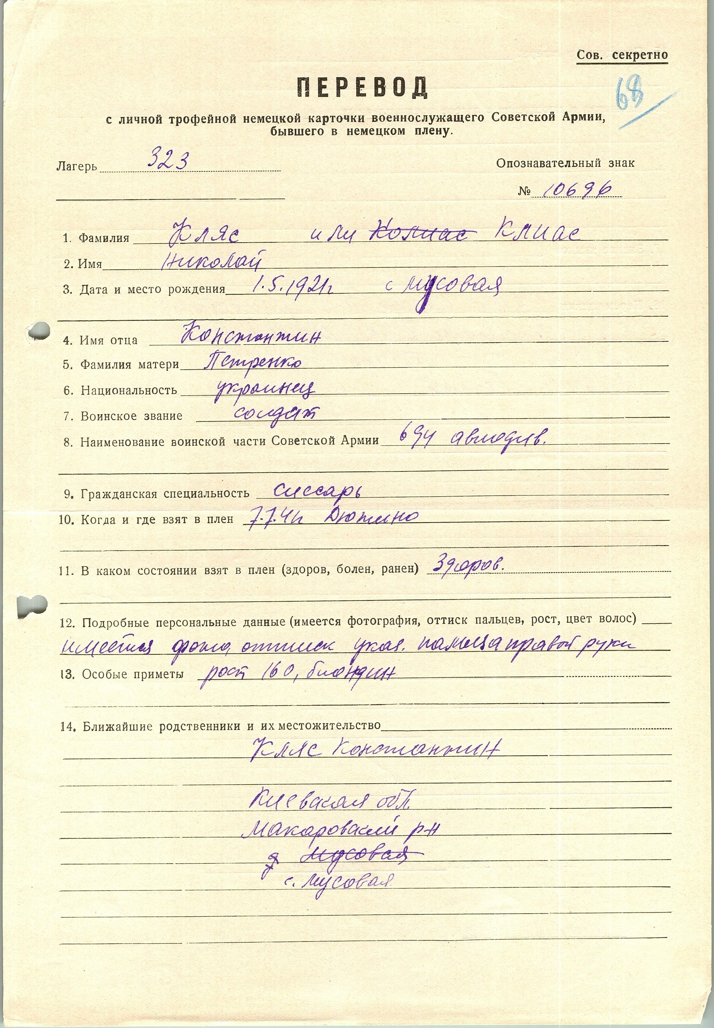 Военнопленные, трофейные карточки. Киевская обл.