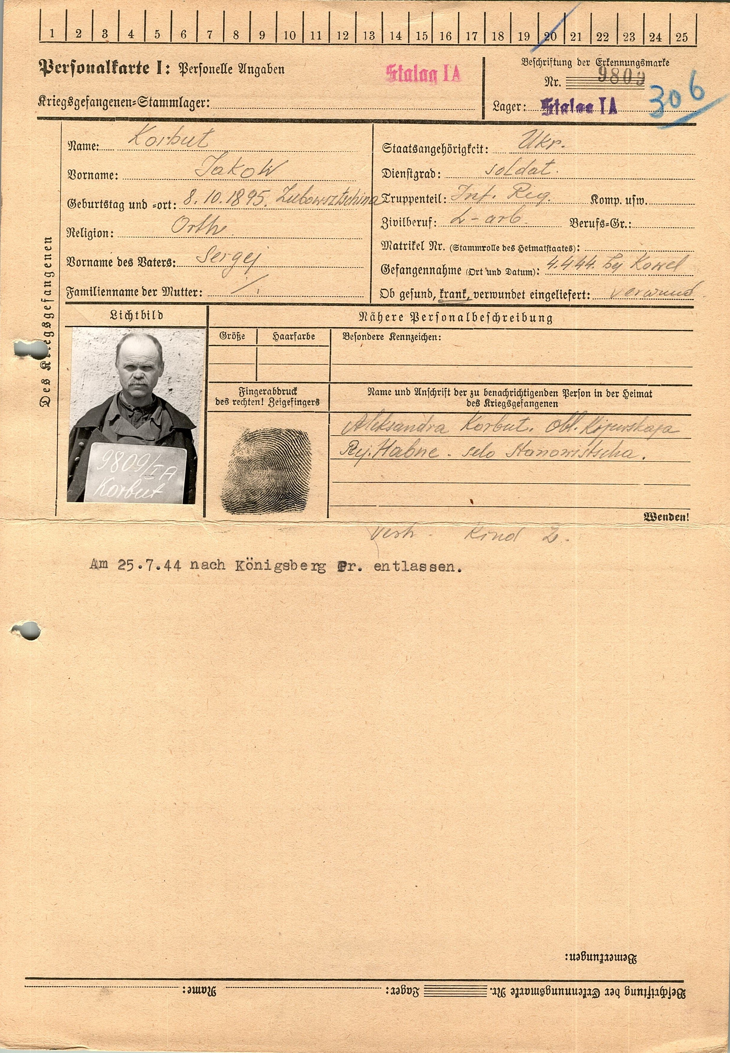 Военнопленные, трофейные карточки. Киевская обл.