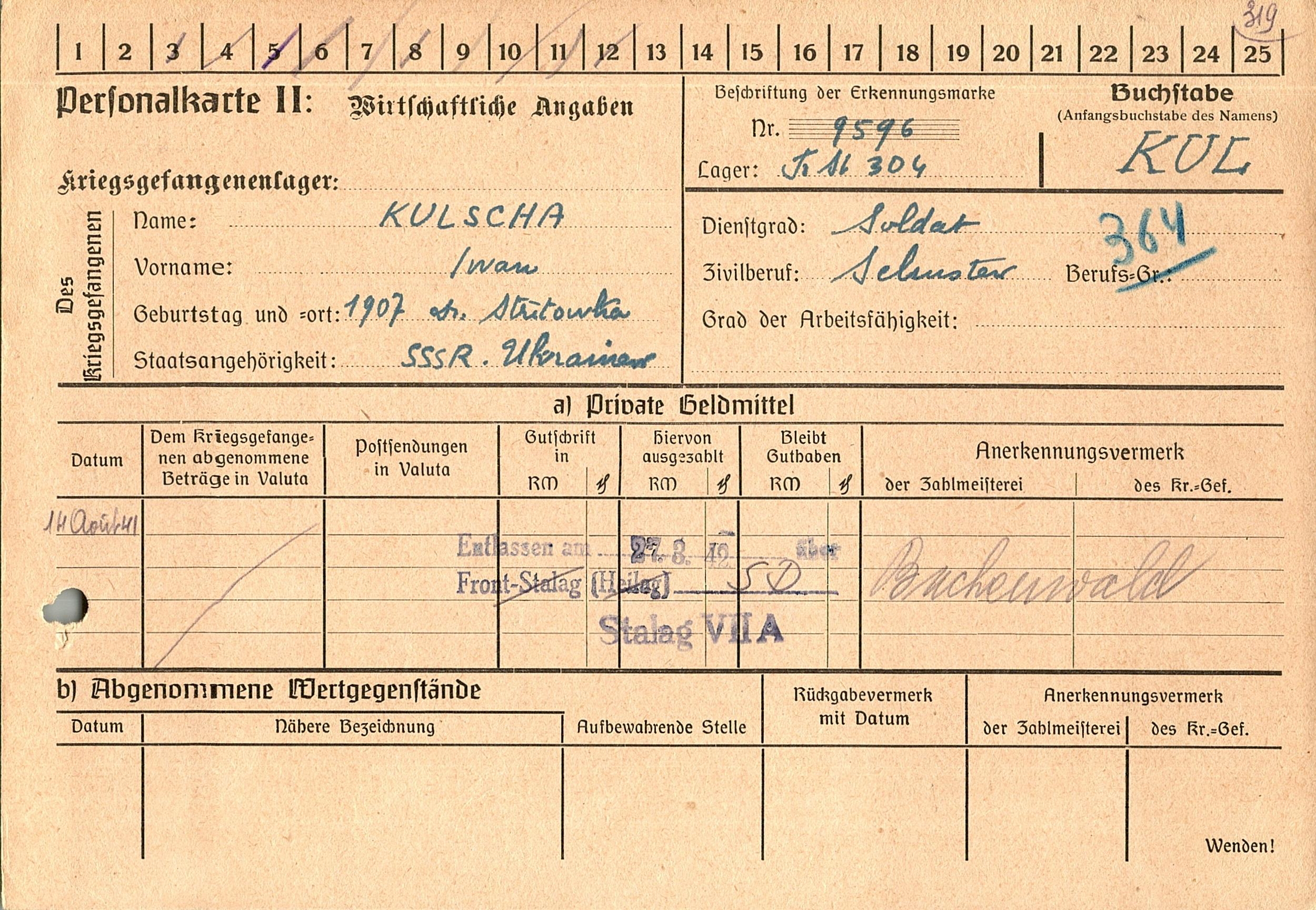 Военнопленные, трофейные карточки. Киевская обл.