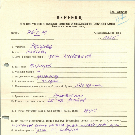 Военнопленные, трофейные карточки. Киевская обл.
