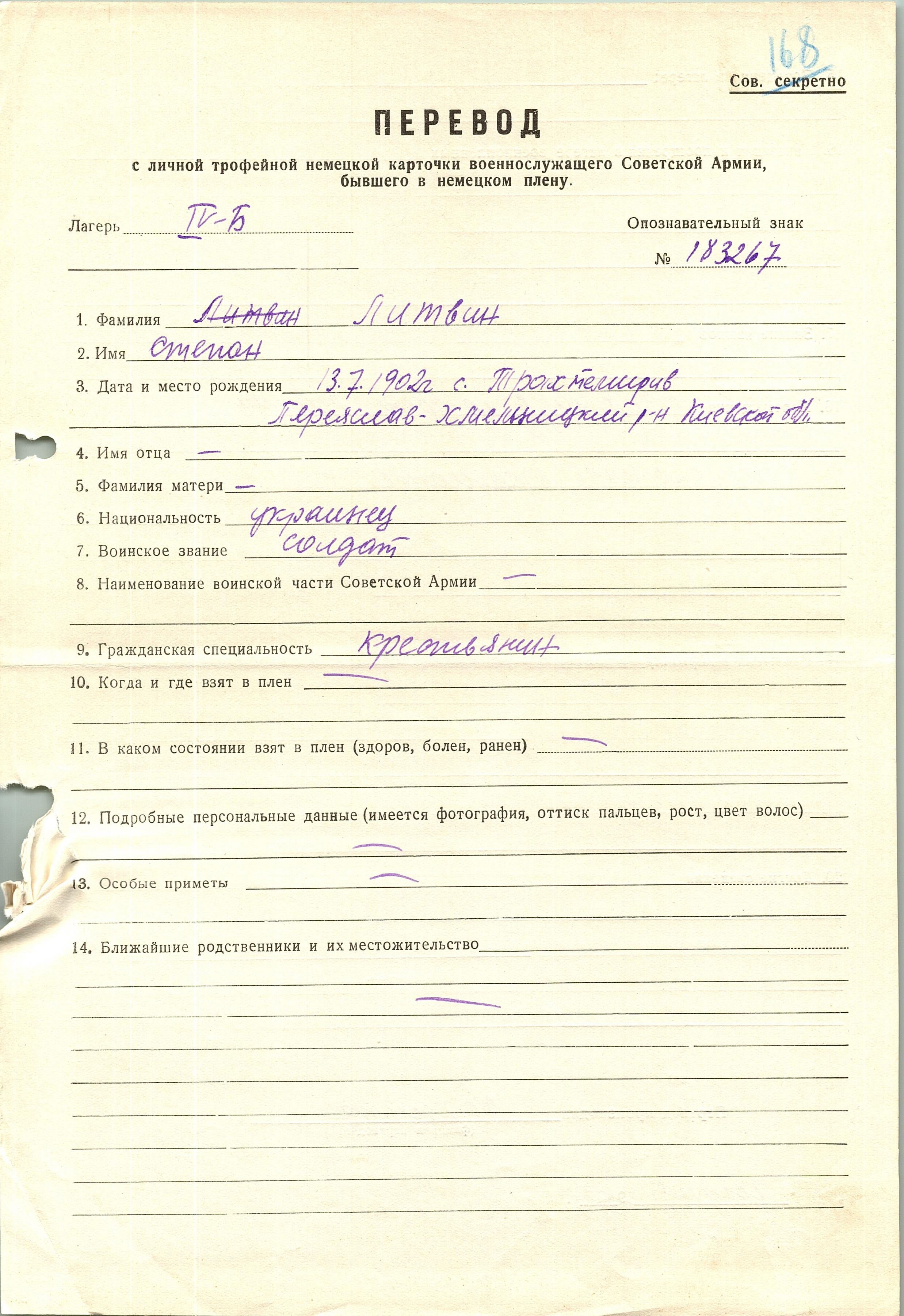 Военнопленные, трофейные карточки. Киевская обл.