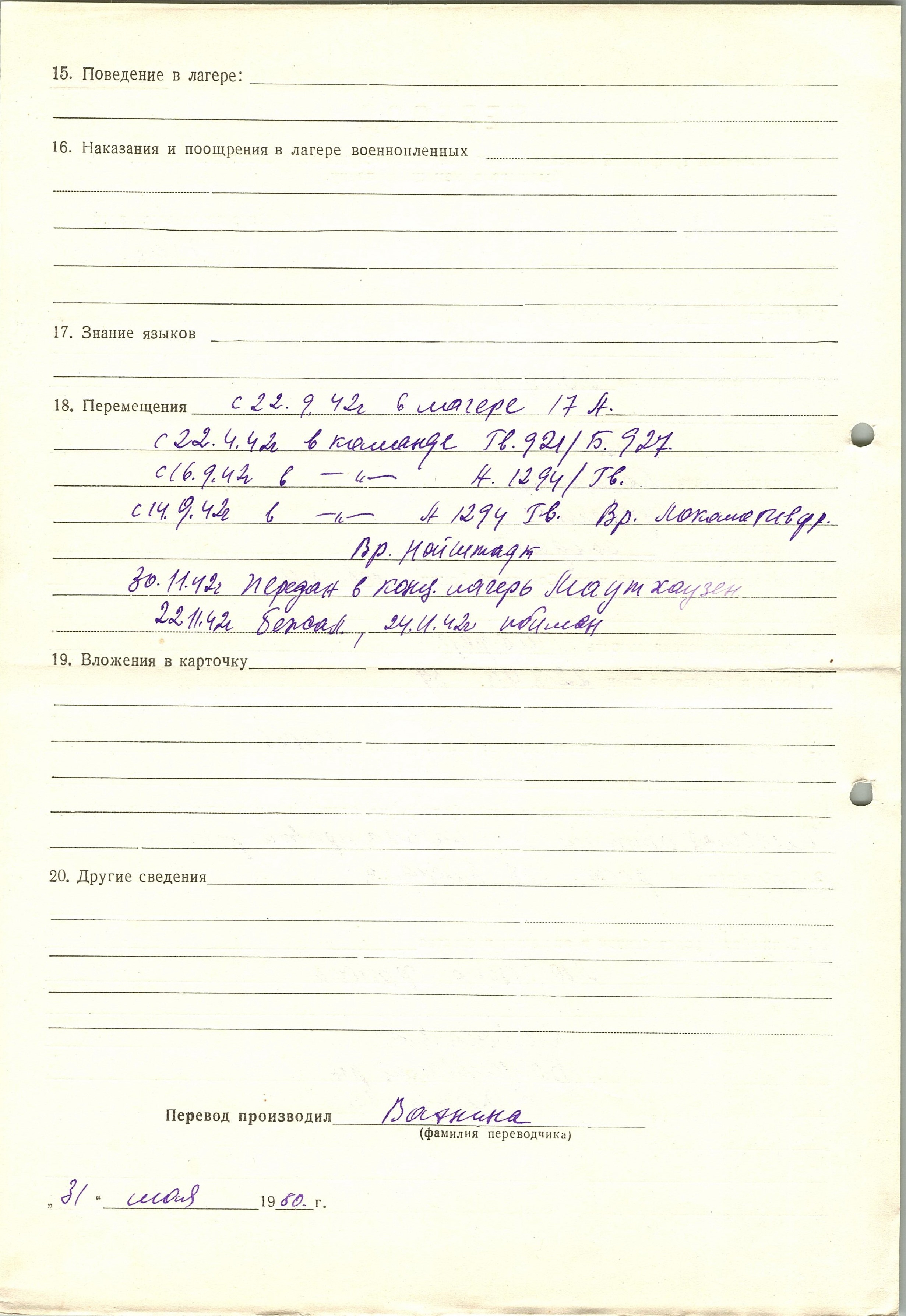 Военнопленные, трофейные карточки. Киевская обл.