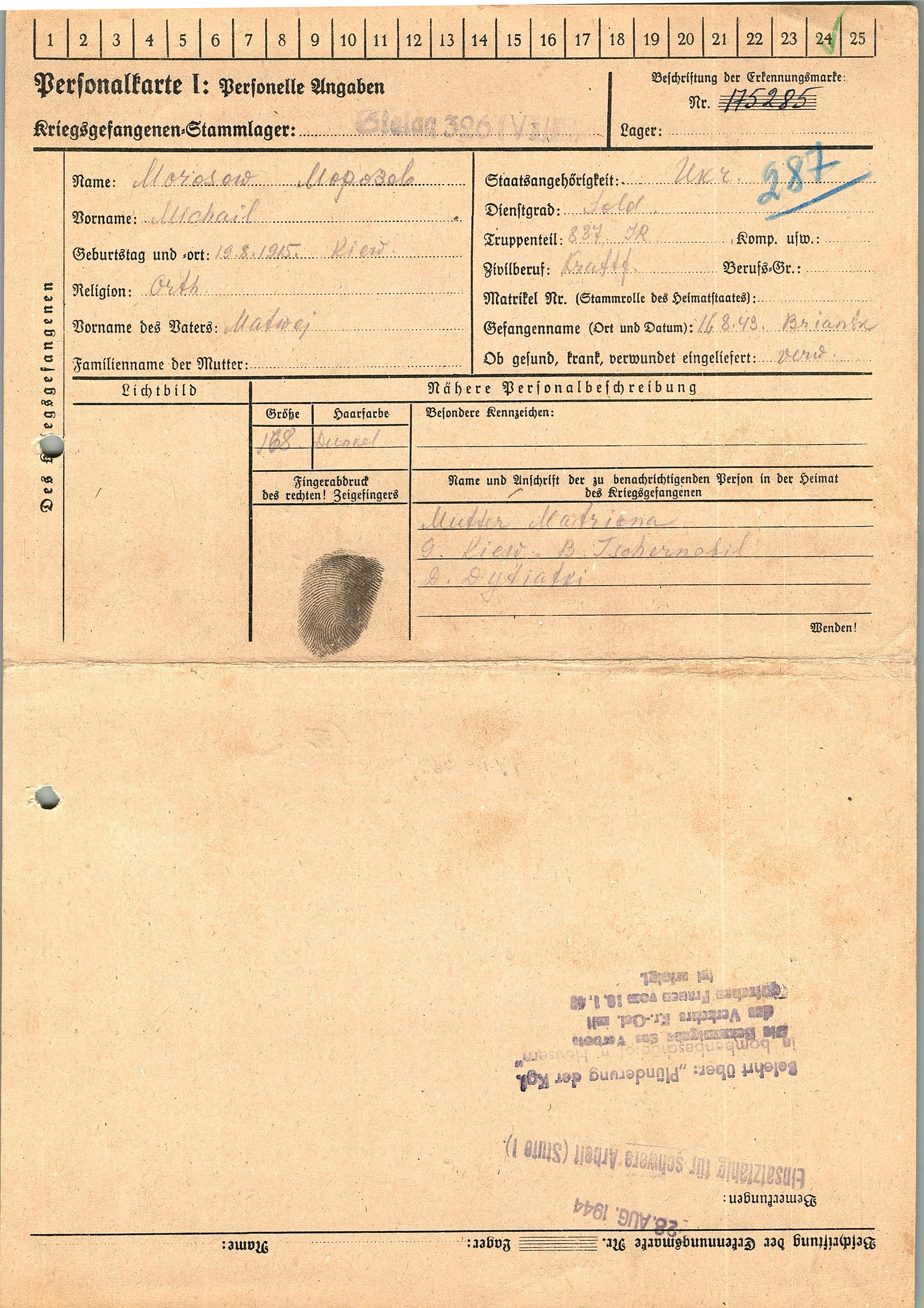 Военнопленные, трофейные карточки. Киевская обл.