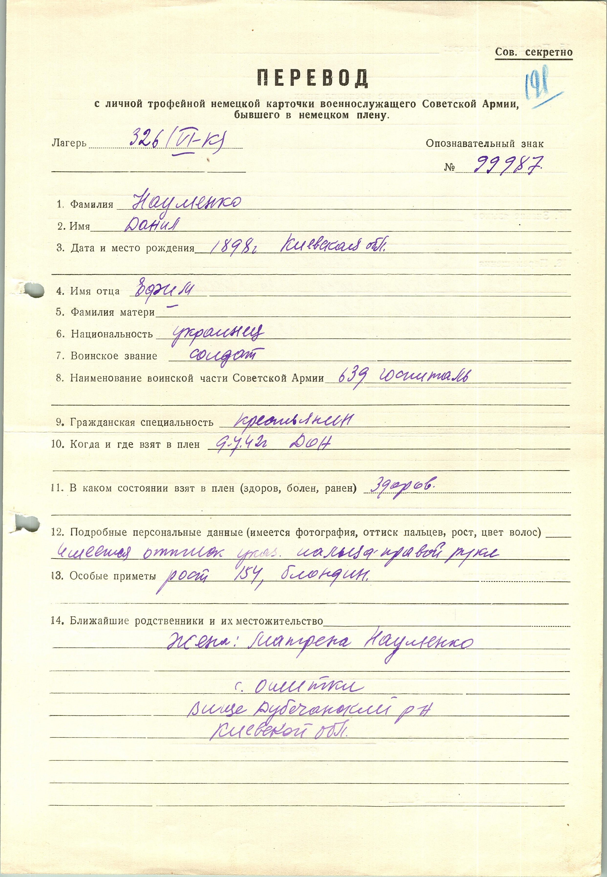 Военнопленные, трофейные карточки. Киевская обл.