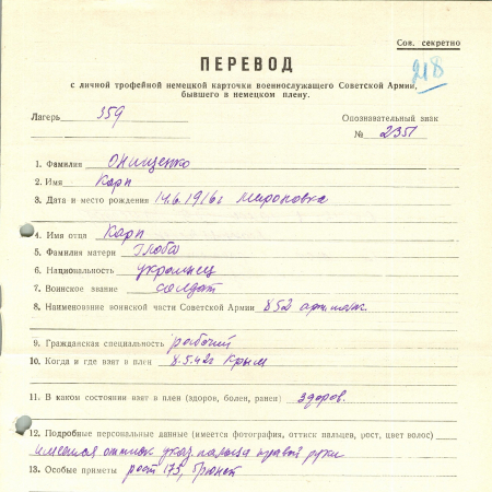 Военнопленные, трофейные карточки. Киевская обл.