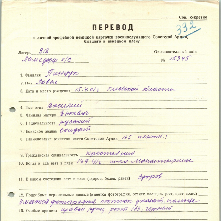 Военнопленные, трофейные карточки. Киевская обл.