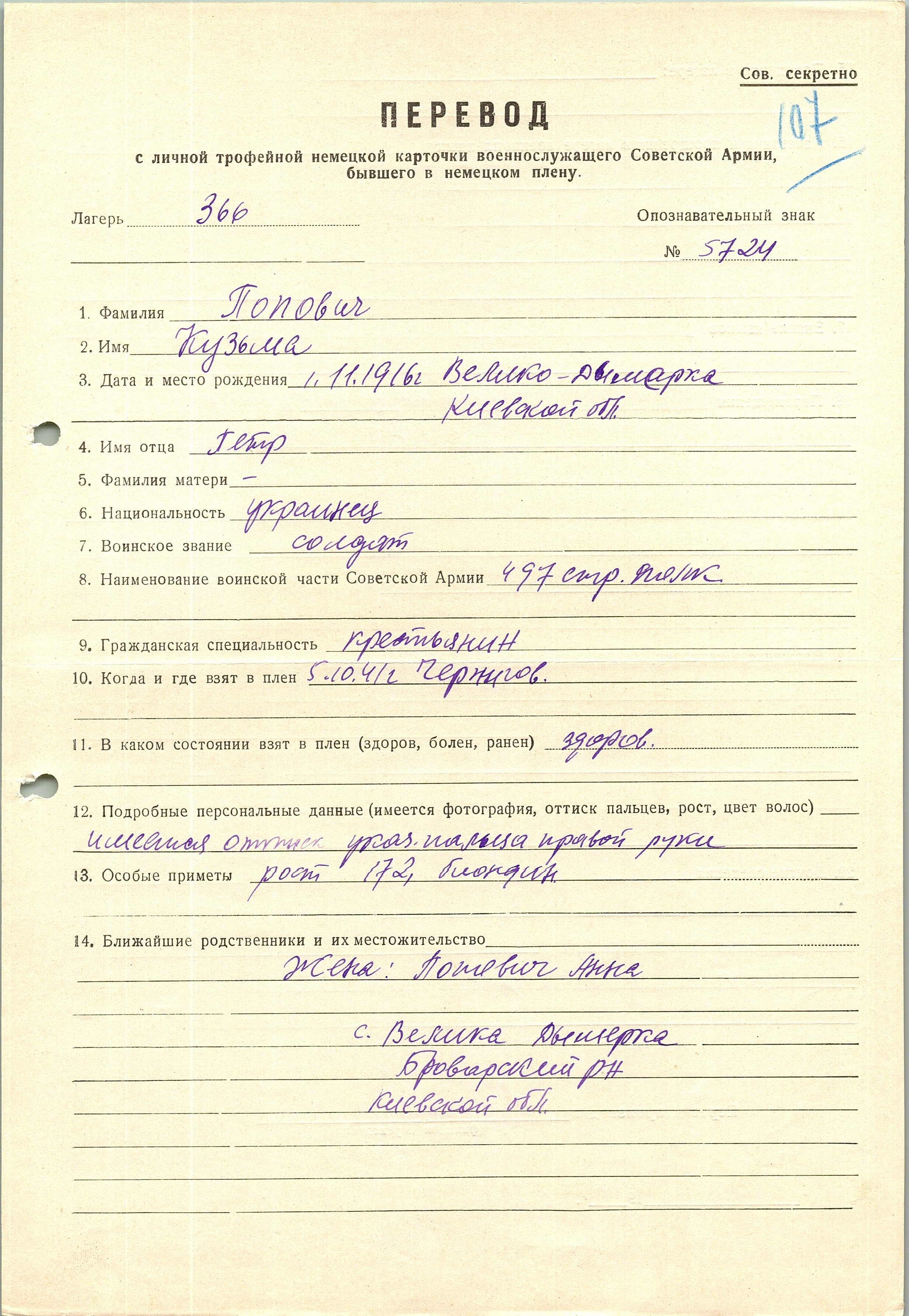 Военнопленные, трофейные карточки. Киевская обл.