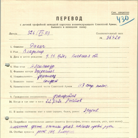 Военнопленные, трофейные карточки. Киевская обл.