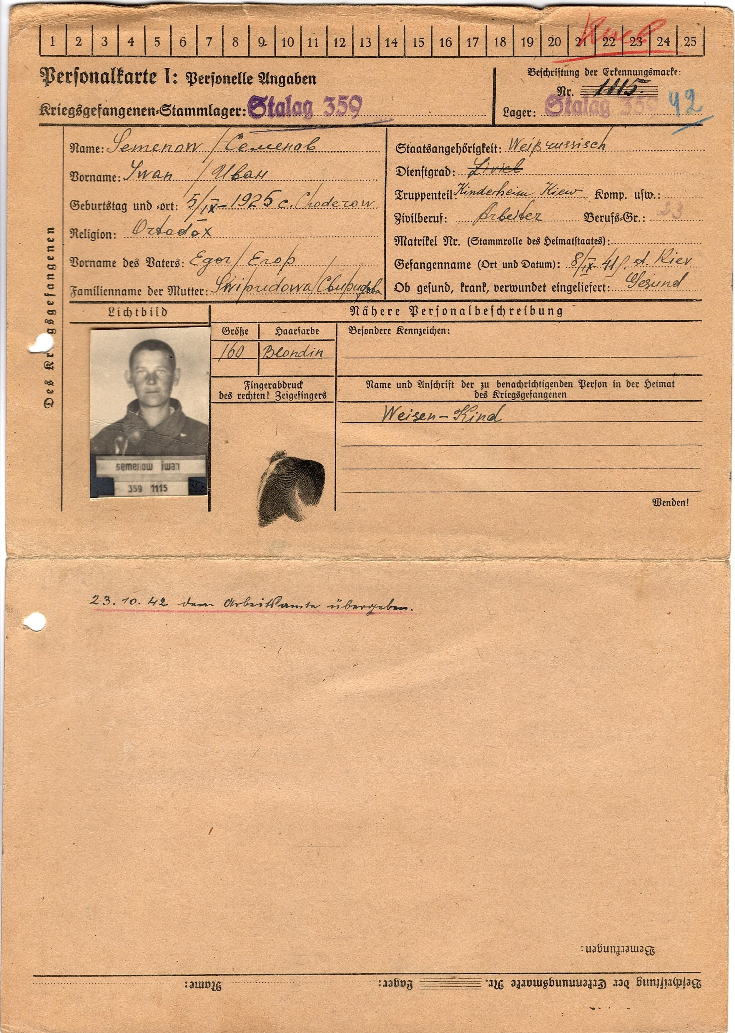 Военнопленные, трофейные карточки. Киевская обл.