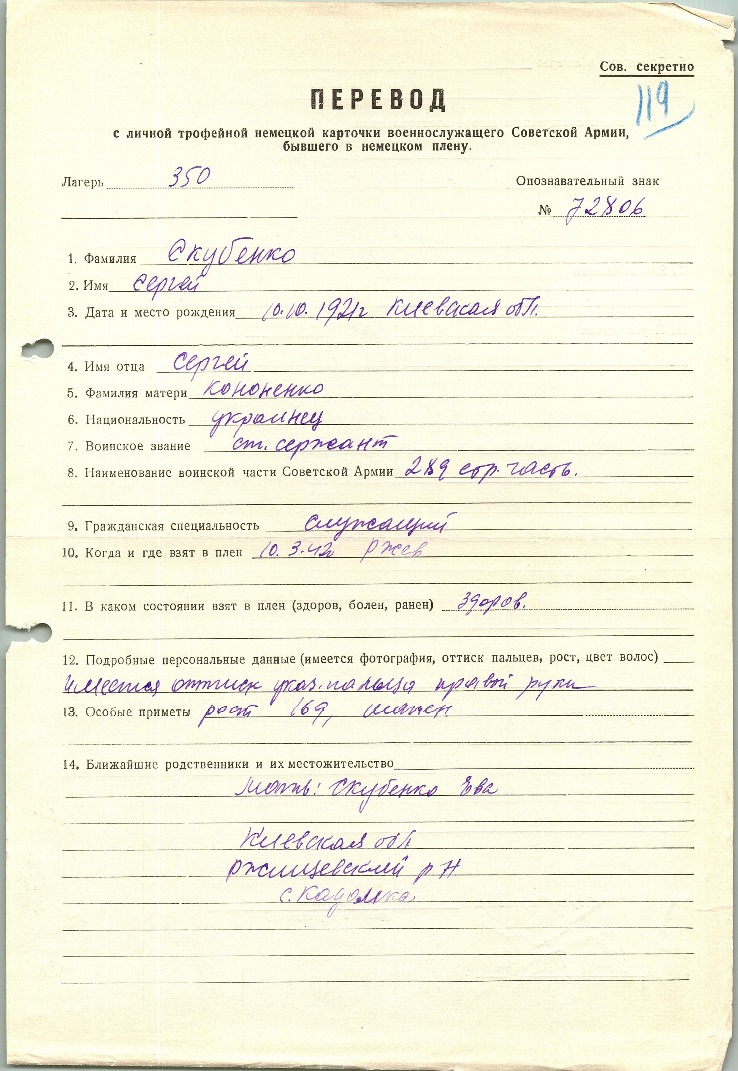 Военнопленные, трофейные карточки. Киевская обл.