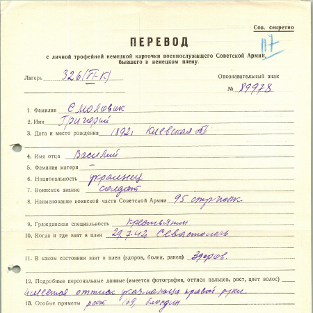 Военнопленные, трофейные карточки. Киевская обл.