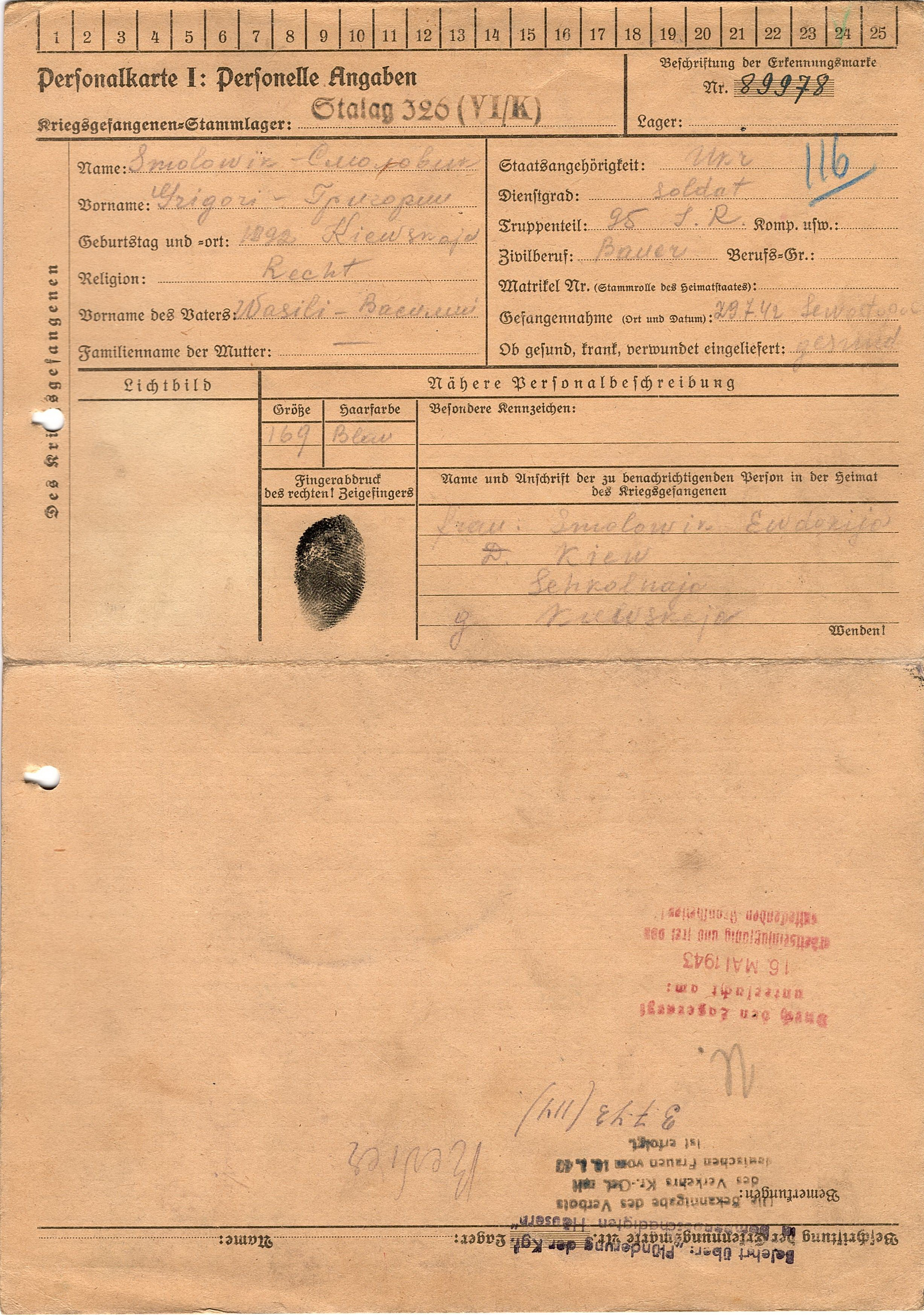 Военнопленные, трофейные карточки. Киевская обл.
