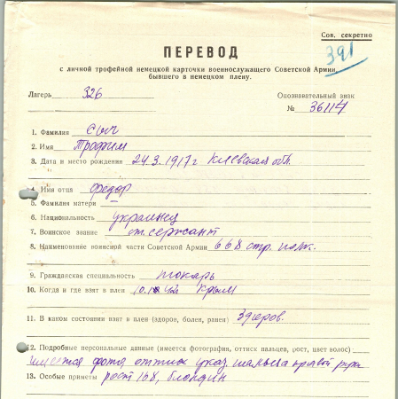 Военнопленные, трофейные карточки. Киевская обл.