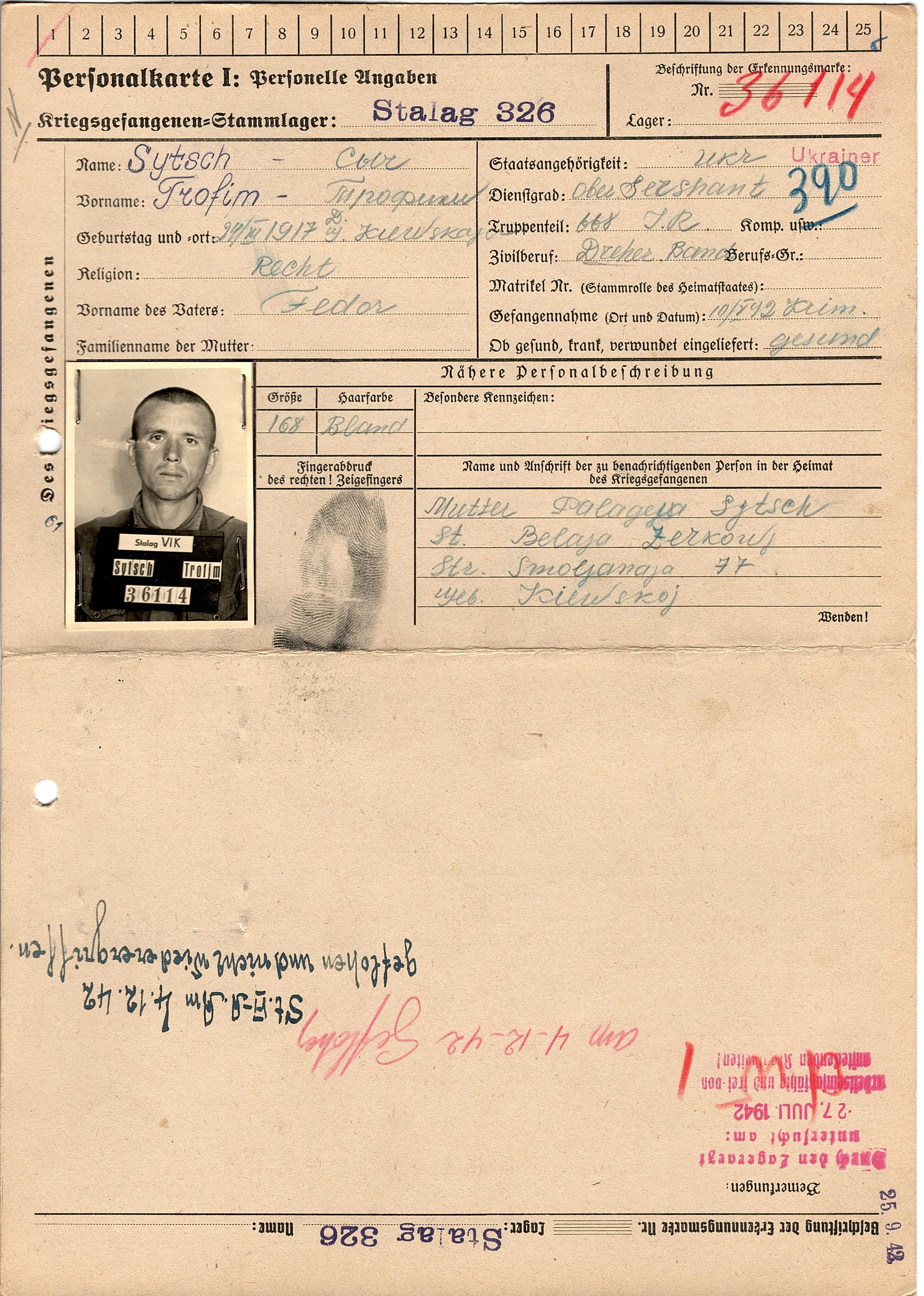 Военнопленные, трофейные карточки. Киевская обл.