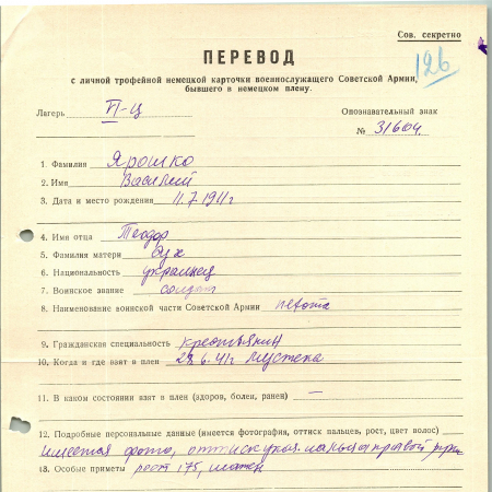 Военнопленные, трофейные карточки. Киевская обл.
