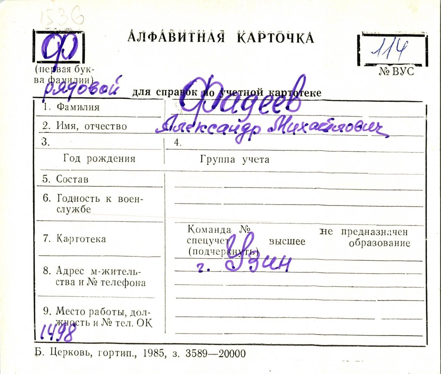 Алфавитные карточки