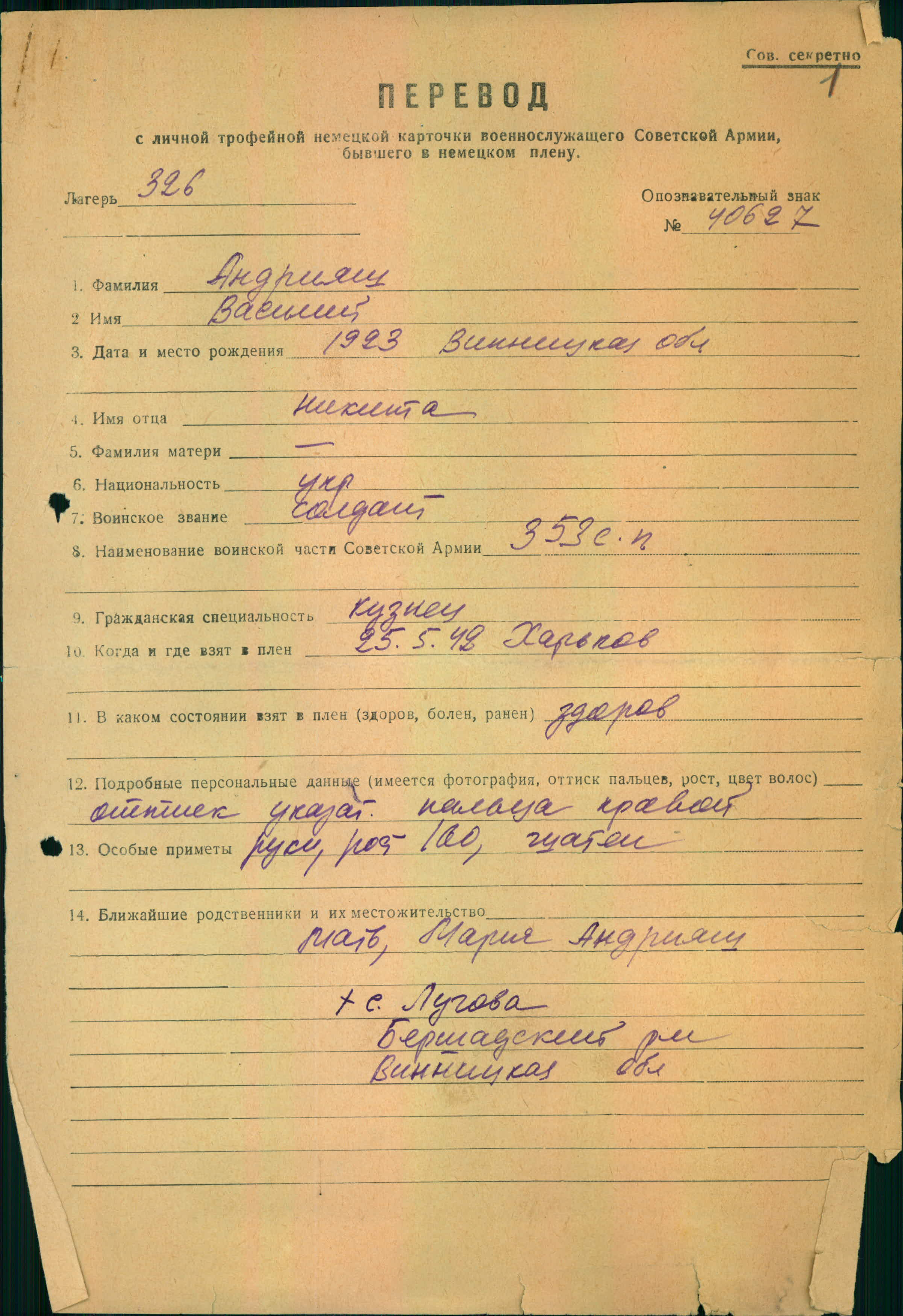 Военнопленные, трофейные карточки. Винницкая обл.